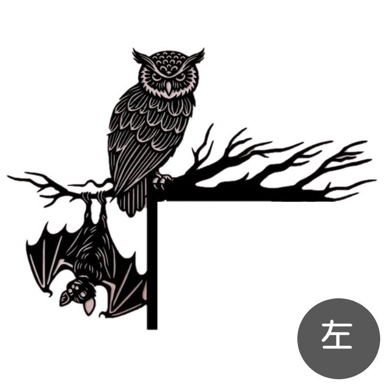 ドア オーナメント フクロウとコウモリ 20cm 左 雑貨 置物 園芸 ガーデン オブジェ 梟 ふくろう ミミズク 蝙蝠 n919