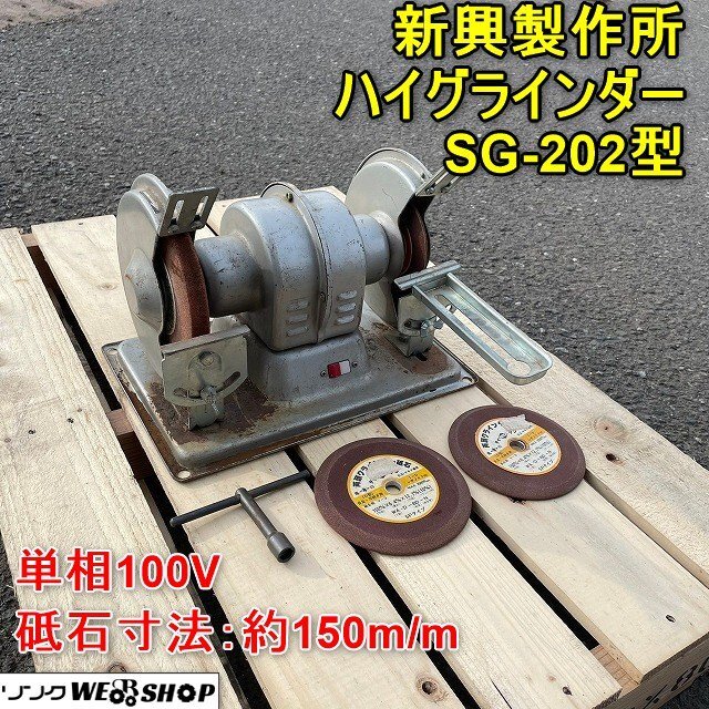 福井▲新興製作所 ハイグラインダー SG-202型 単相100V 50/60Hz 砥石寸法 約150m/m 研磨 砥石 高性能 万能 電動工具 切断 中古品