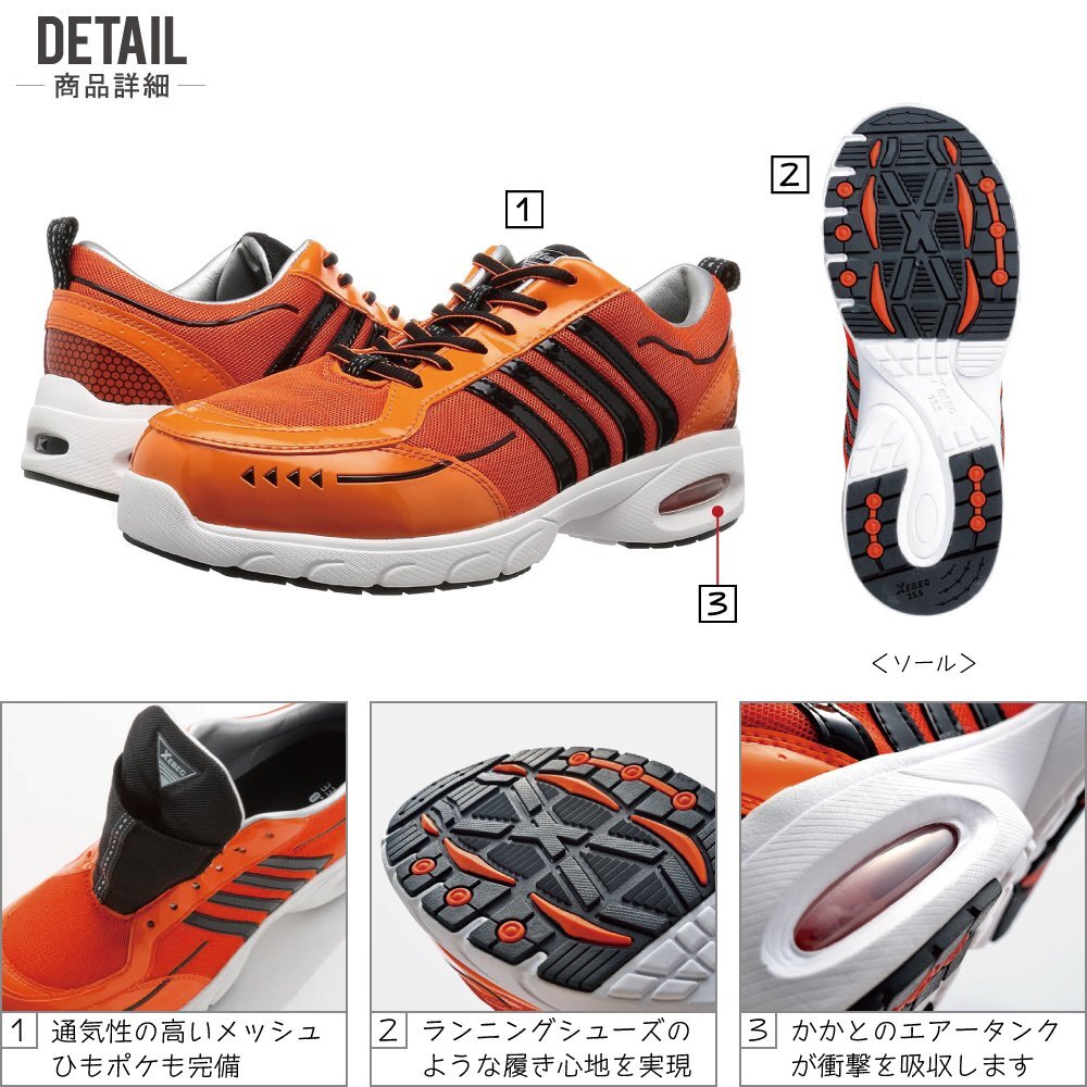 XEBEC 安全靴 24.0 スニーカー 85124 セーフティーシューズ 先芯入り 耐油 通気性 オレンジ ジーベック ★ 対象2点 送料無料 ★