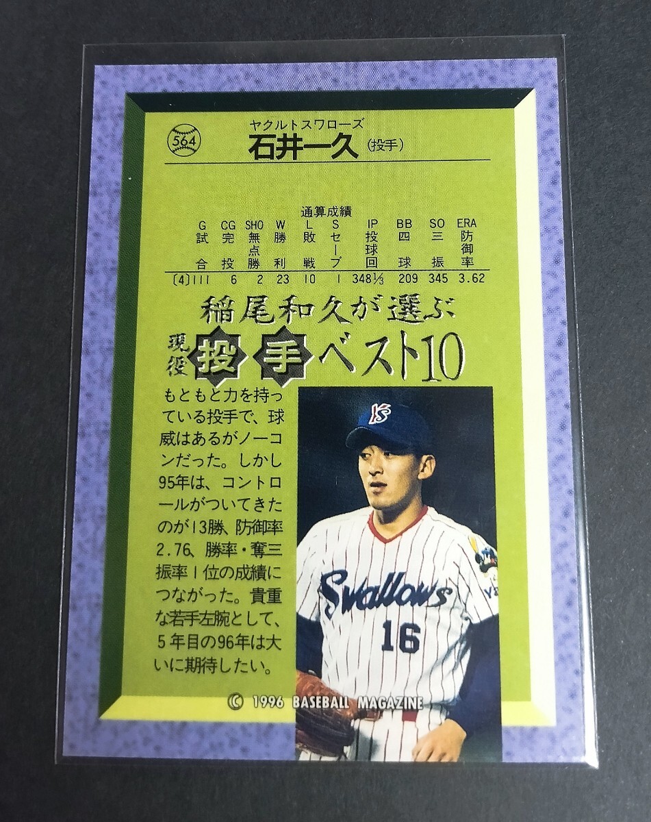 1996年BBM 石井一久(ヤクルト) 10BEST PITCHERS シルバーネーム。No,564。