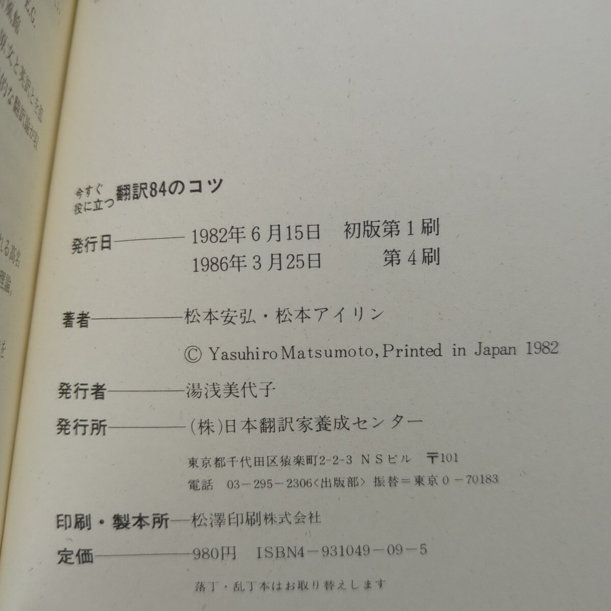 今すぐ役に立つ翻訳84のコツ 英和翻訳の基礎知識 松本安弘 松本アイリン 日本翻訳家養成センター 初版 中古