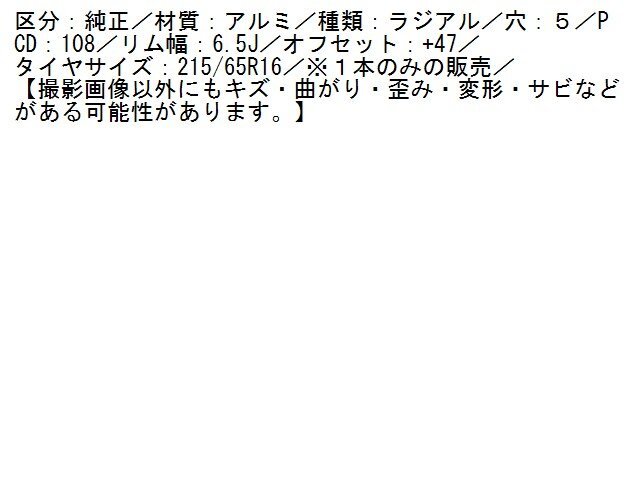 1UPJ-31089033]プジョー・RIFTER(リフター) タイヤ ホイール 1本(3) 215/65R16 中古
