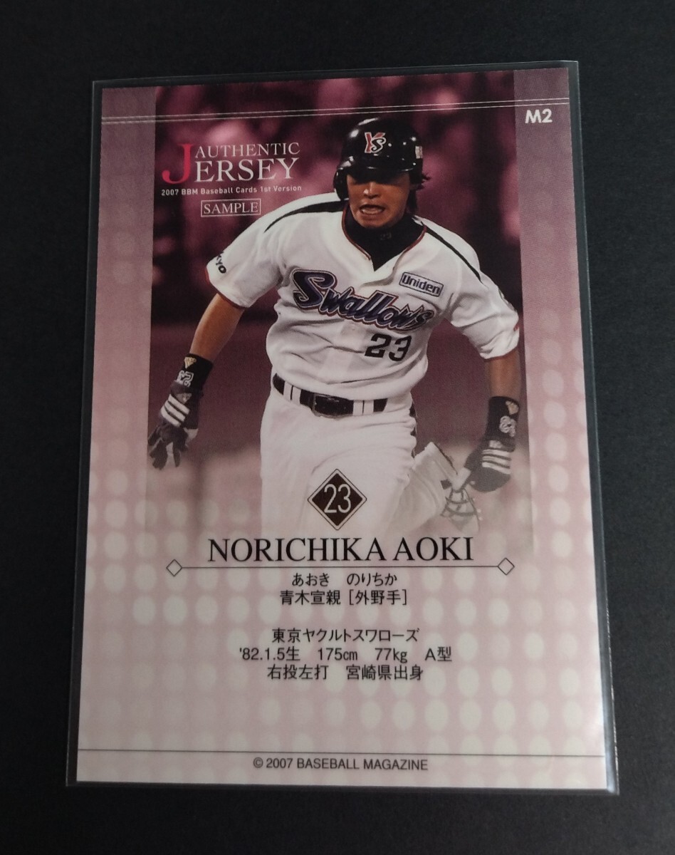 2007年BBM 青木宣親(ヤクルト)ノンジャージーカード。サンプル。No,M2。
