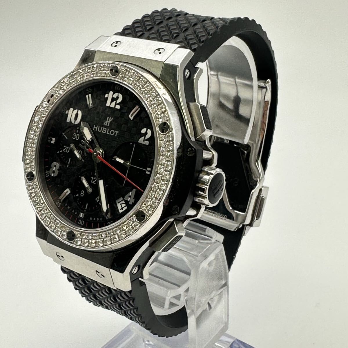 ◎ 稼働 良品 HUBLOT BIGBANG ウブロ ビッグバン ダイヤ ベゼル 341.SB.131.RX ブラック文字盤 AT オートマ ラバーバンド メンズ 腕時計