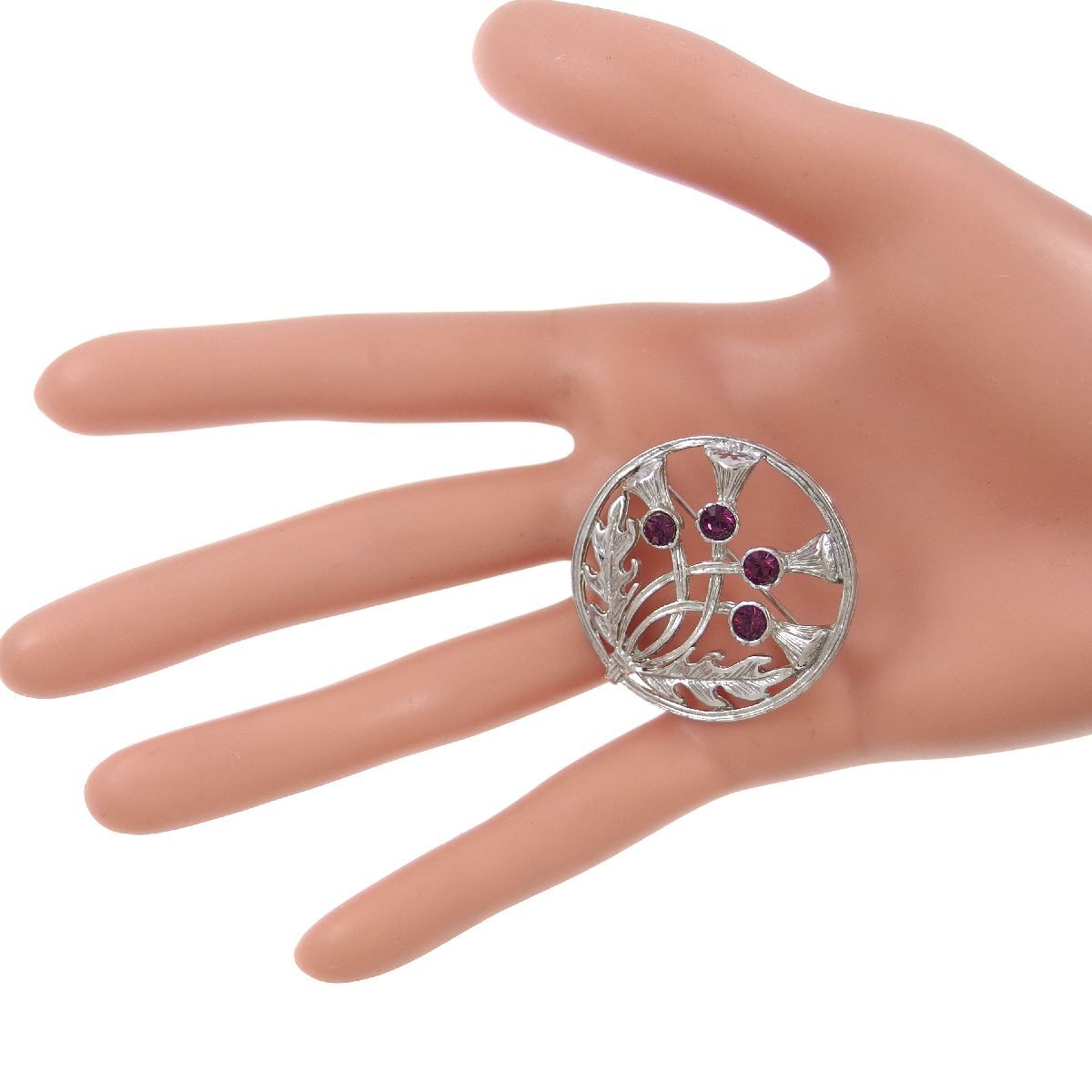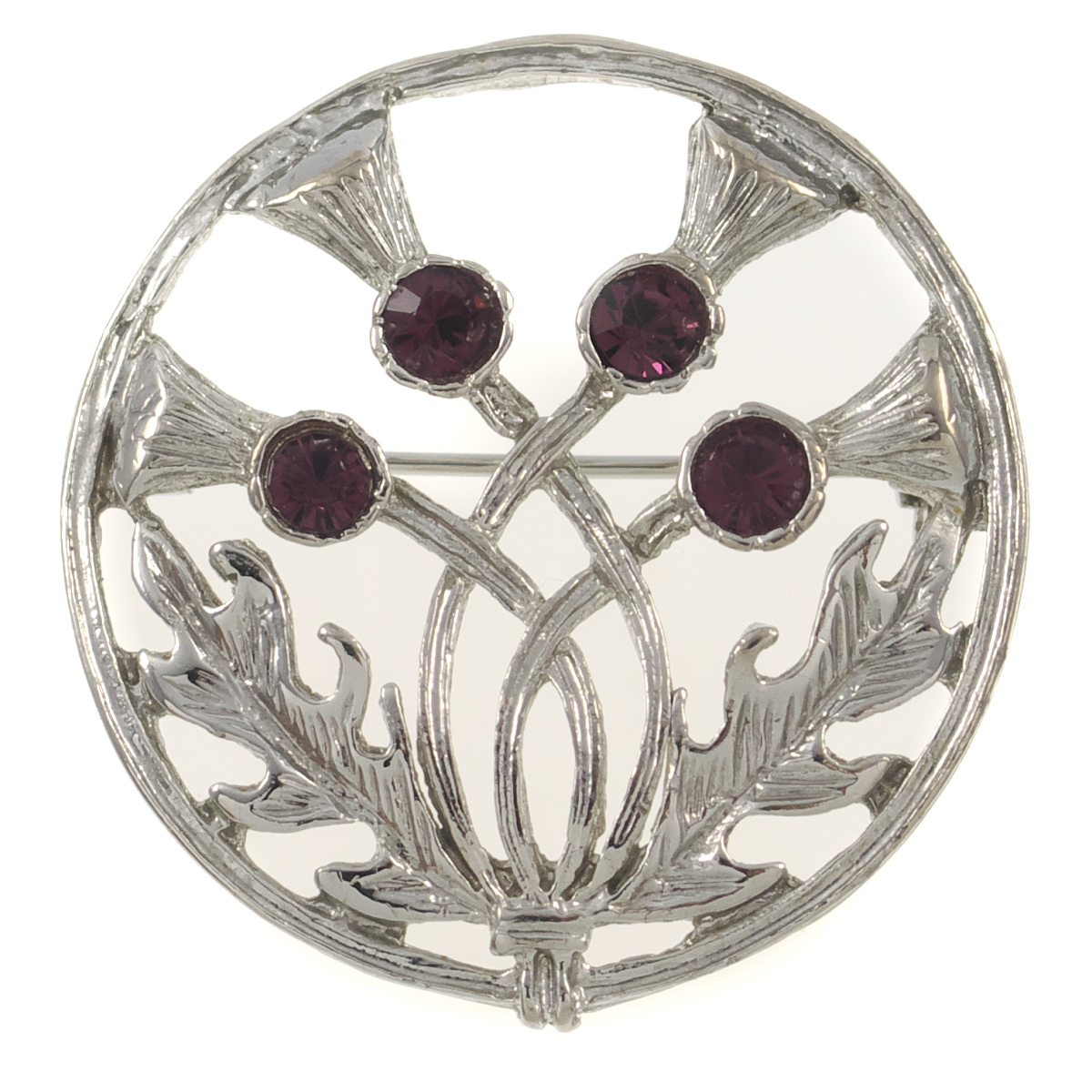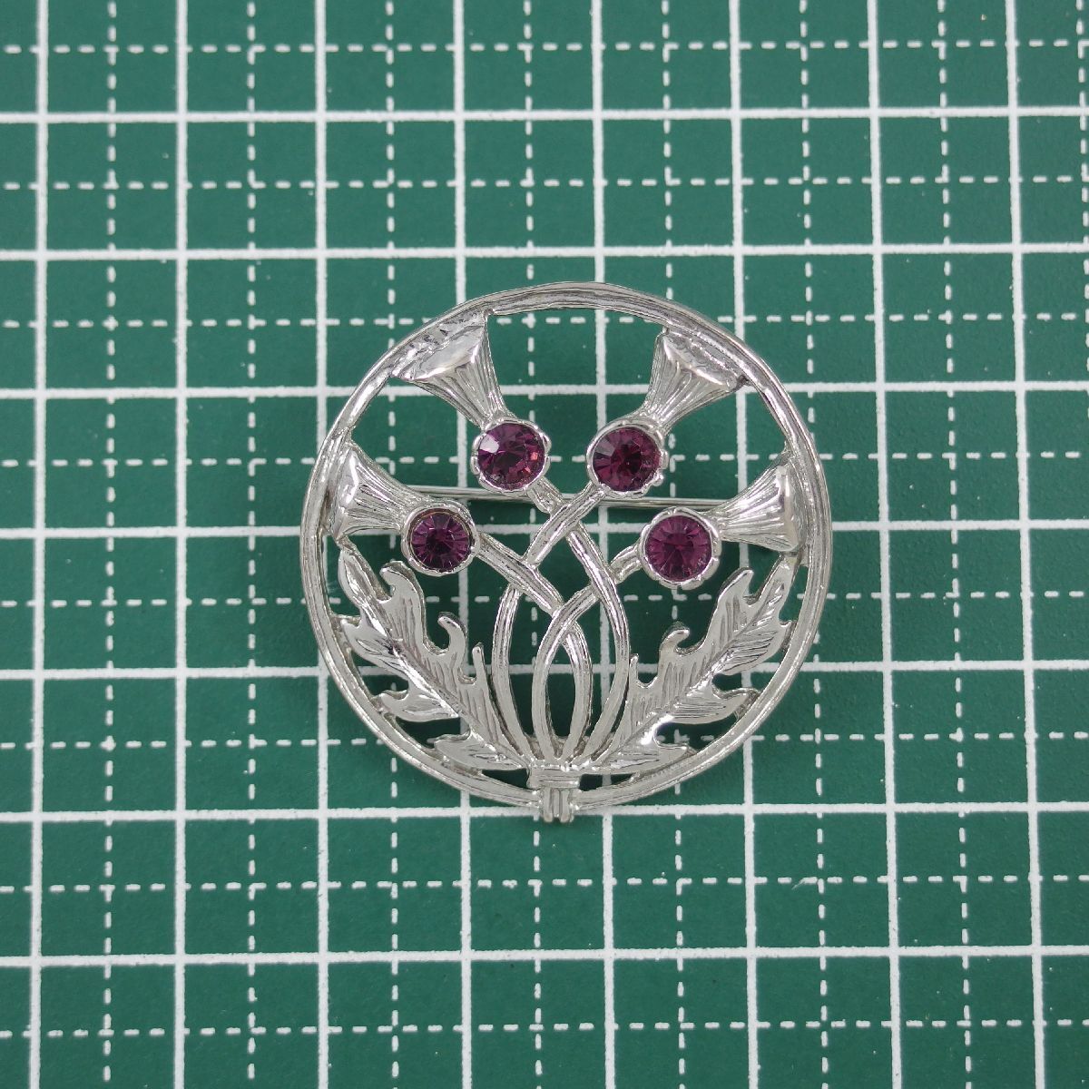 UK4398◆ ラウンド アザミの花 パープル系ラインストーン フラワー 色石 ケルト イギリス ◆ ヴィンテージブローチ ◆