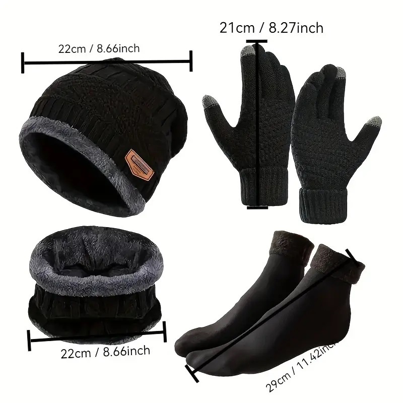 新品B2 防寒用4点SET ニット帽+ネックマフラー+手袋+ネオプレン靴下 大人用フリーサイズ