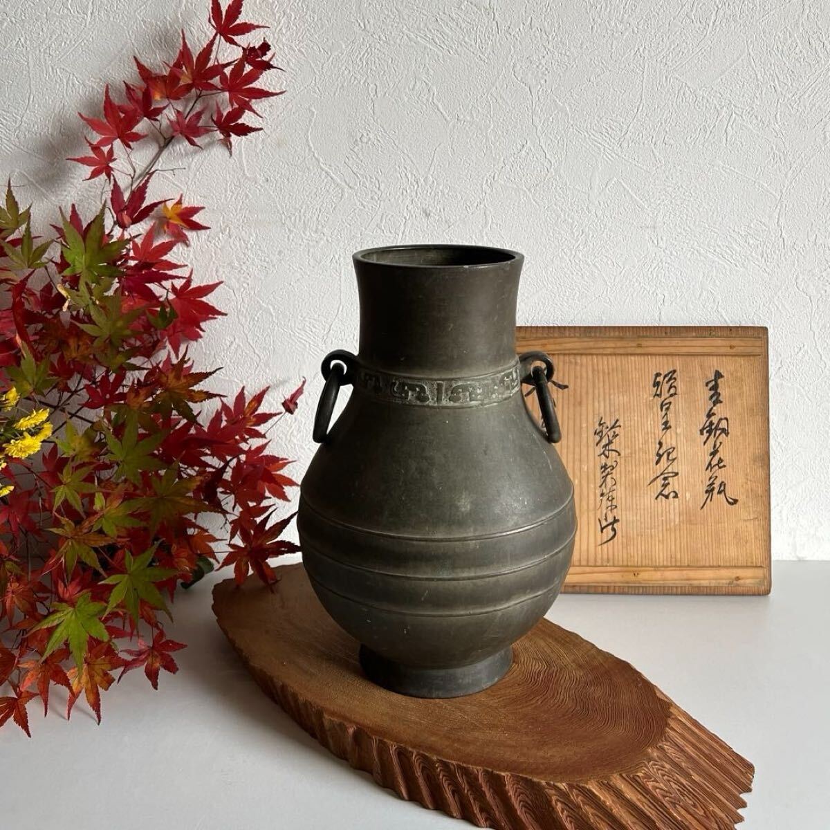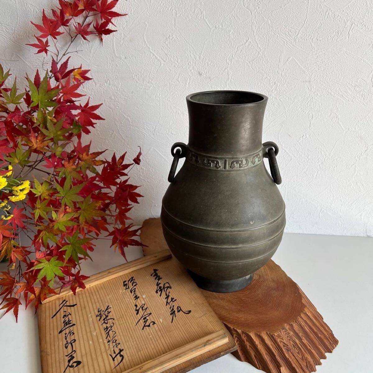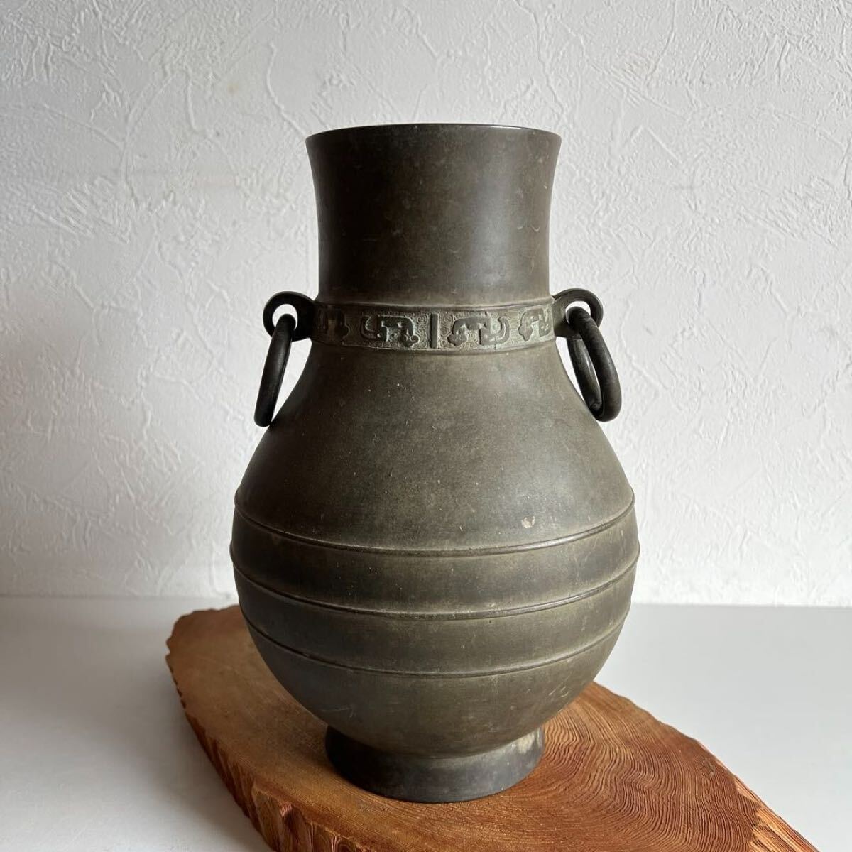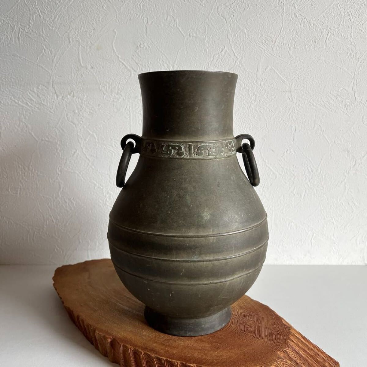 wasabi k007 青銅花瓶 銅製耳付き花瓶 花器 花入れ 飾り壺 鈴木製煉所 鈴木商店 和製アンティーク 骨董品 時代物 第一次世界大戦 戦時中