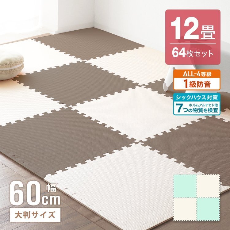 ジョイントマット 64枚セット 12畳 大判 60cm 厚み1cm 床暖房対応 ノンホルムアルデヒド 1級防音 防音対策 サイドパーツ フロアマット 新品