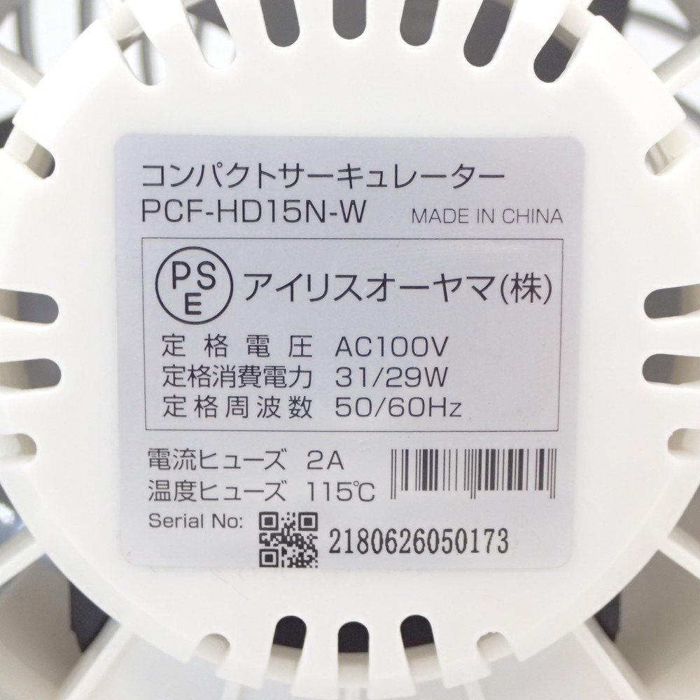 アイリスオーヤマ IRIS OHYAMA サーキュレーター PCF-HD15N-W ホワイト 扇風機 卓上 空気循環 オールシーズン KK18395 中古オフィス家電
