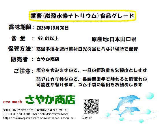 重曹(食品グレード) 975g×1袋
