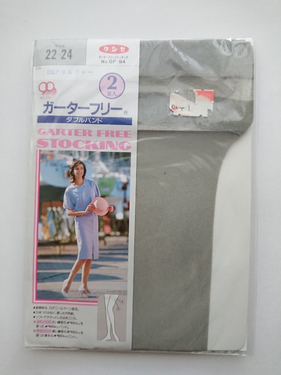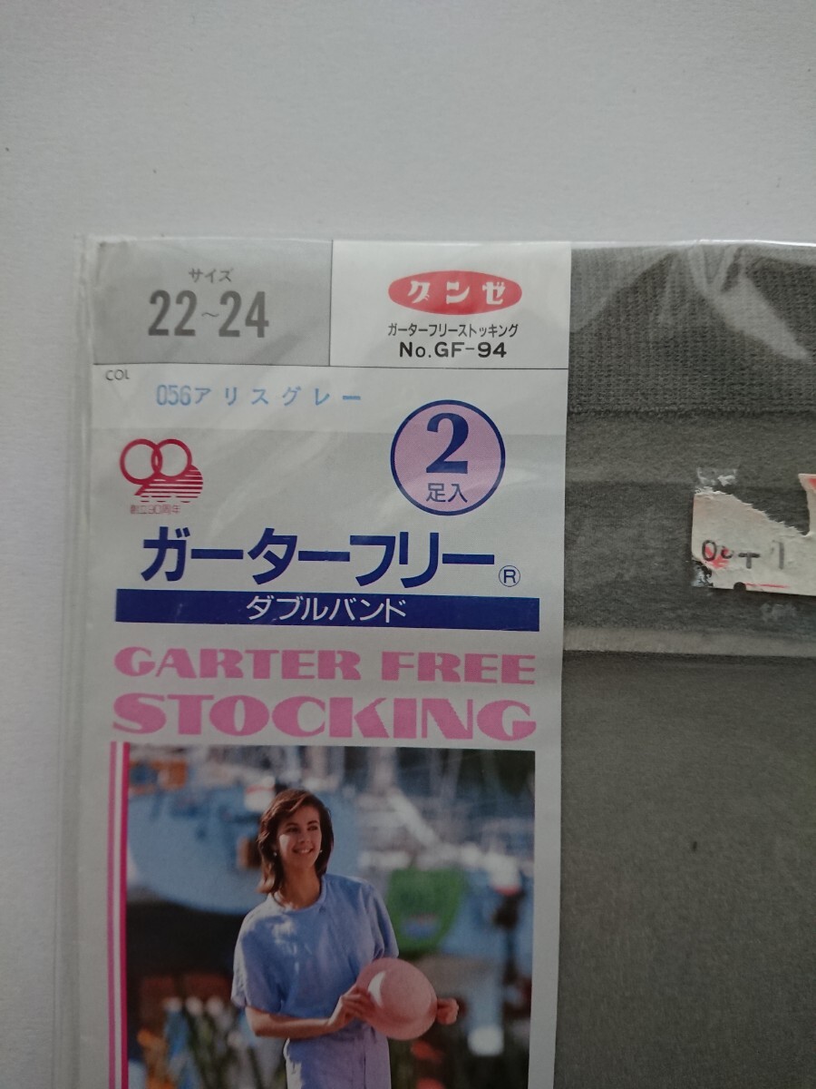 ガーターゴム付ストッキング2足入 グンゼ ダブルバンド サイズ22〜24cm アリスグレー