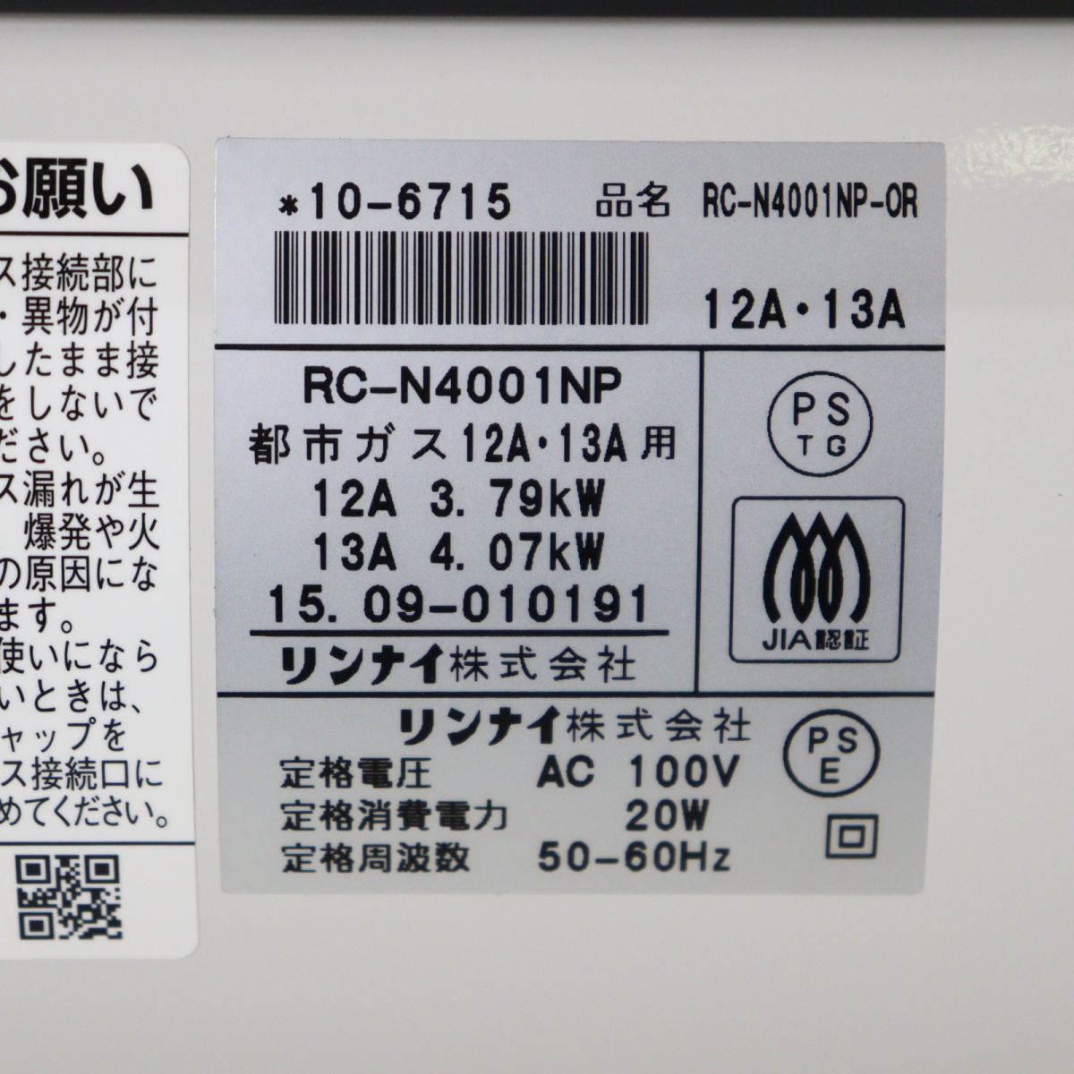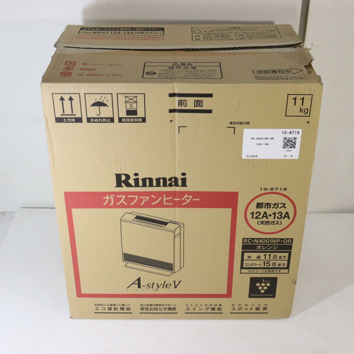 未使用/ガスファンヒーター(木造11畳、鉄筋/断熱木造15畳まで) RC-N4001NP-OR[都市ガス12A/13A用]/プラズマクラスター