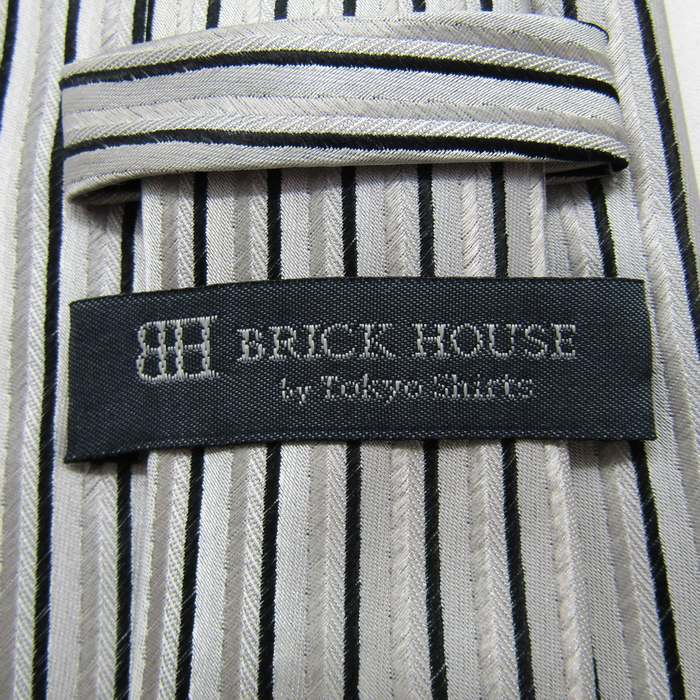 ブリックハウス ブランド ネクタイ ストライプ柄 パネル柄 バーチカルストライプ シルク PO メンズ グレー BRICK HOUSE
