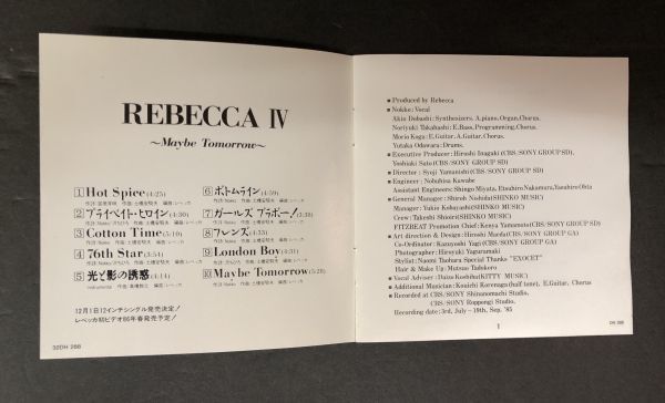 【CD】<<箱帯付>>【美盤】REBECCA レベッカ REBECCA IV~MAYBE TOMORROW 32DH-288