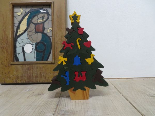 【USED】 撮影スタジオで使われていた 木製立体パズル クリスマスツリー 検索用⇒ 北欧/木のおもちゃ/パズル/ハンドメイド/F1012
