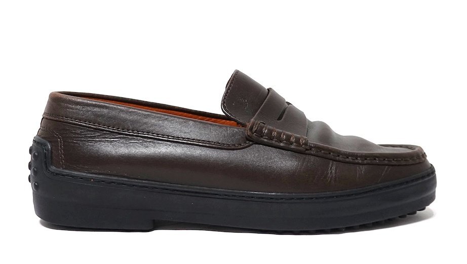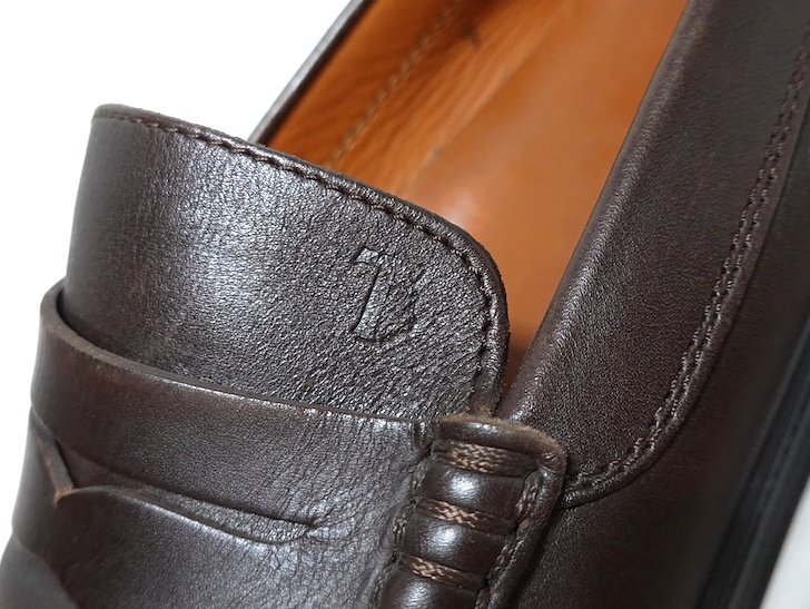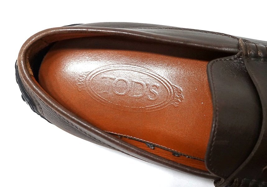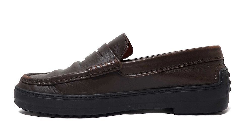 TOD'S トッズ Tスタンプロゴ ラバーペブル レザー ローファー カーフ ダークブラウン メンズ 7 革靴 ゴンミーニ シューズ 25.5-26cm