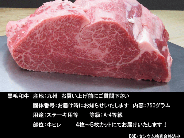 〓牛宗 バーゲン価格 黒毛和牛 A4等級 〓牛ヒレ 5枚カット〓750g☆