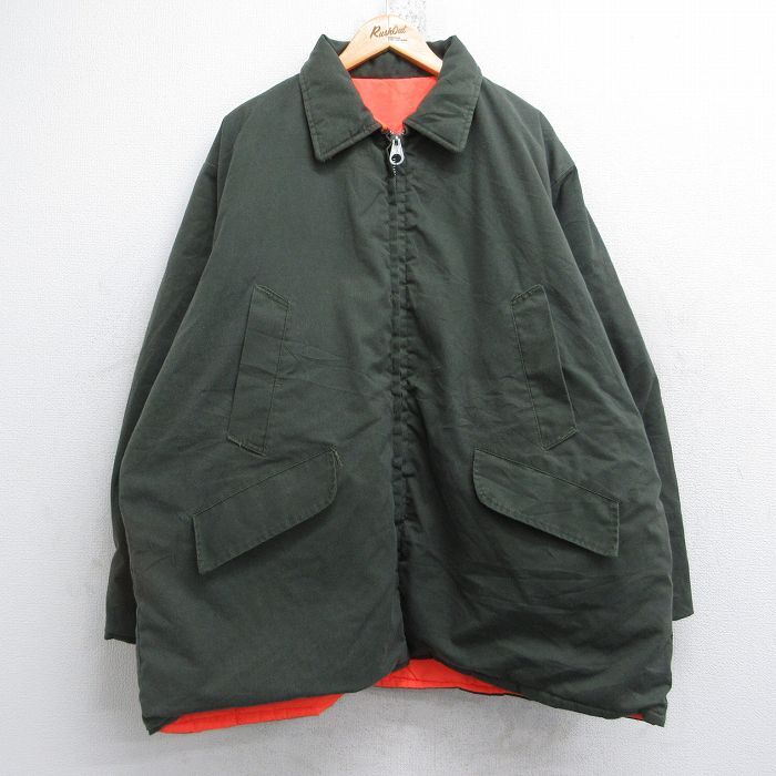 XL/古着 長袖 ジャケット メンズ 80s リバーシブル 大きいサイズ ロング丈 濃緑 グリーン 25oct25 中古 アウター