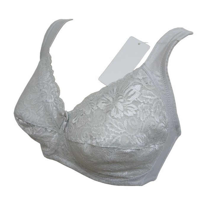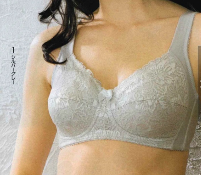 A85・シルバーグレー 綿混 フルカップノンワイヤーブラジャー カップ裏 綿100% 幅広ストラップ 脇高設計 新品