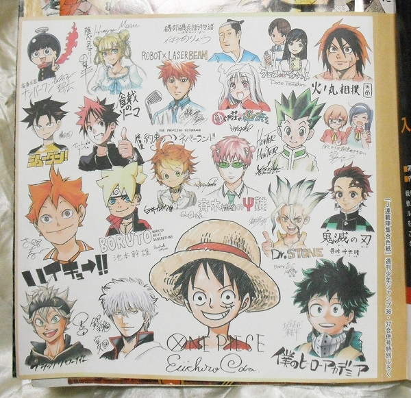 週刊少年ジャンプ 2017年 36・37号 合併号 連載陣集合サイン色紙 付録など 傷有り