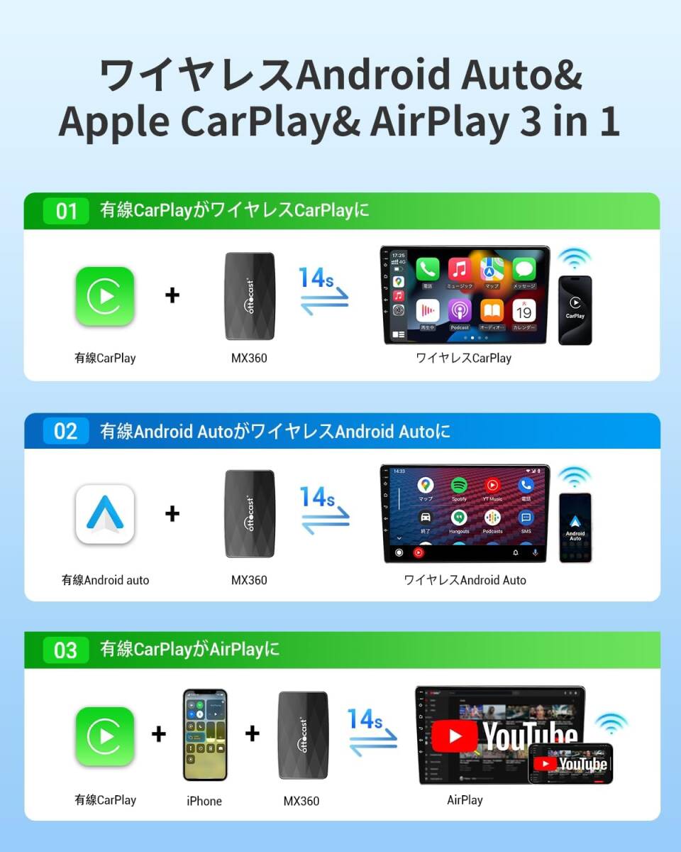 Ottocast MX 3-in-1 ワイヤレスCarPlay