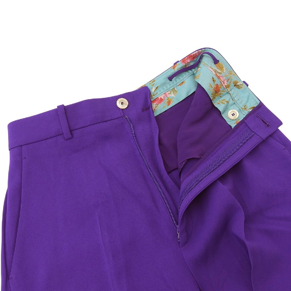極美品▲GUCCI グッチ 529540 シェルロゴボタン センタープレス クロップド丈 ワイドパンツ パープル 38 イタリア製 正規品 レディース