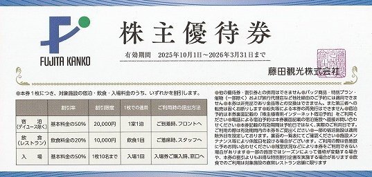 ★☆藤田観光 株主優待券 1枚 送料85円 数量 9 ☆★