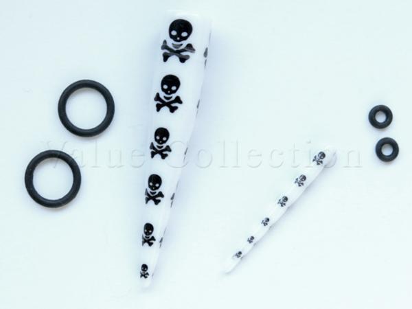 メール便可新品黒ドクロ髑髏エキスパンダー8G3mm1本白ホワイト