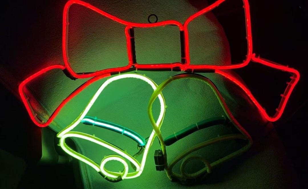 新品☆60x43cm クリスマスライト リボンとベル LEDチューブライト クリスマス装飾