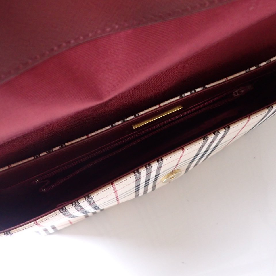 ★BURBERRY/バーバリー ワンショルダーバッグ/ライトベージュ×ボルドー系/ノバチェック/キャンバス×レザー/肩掛け&2042000151