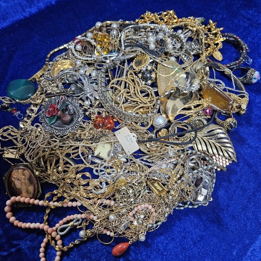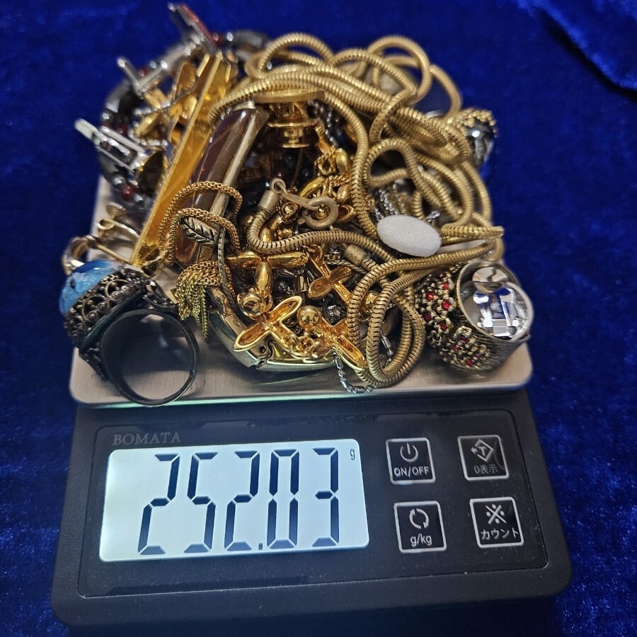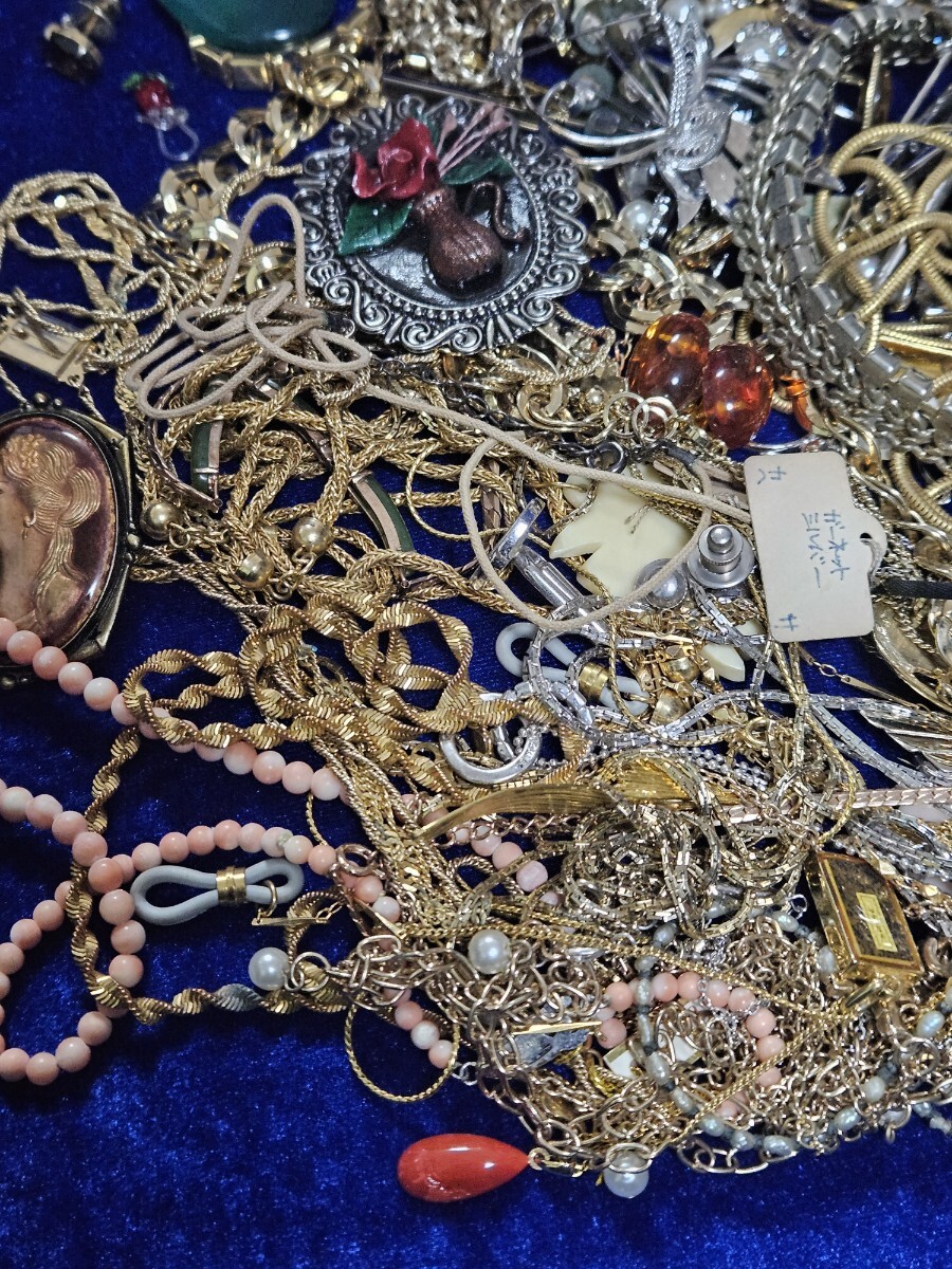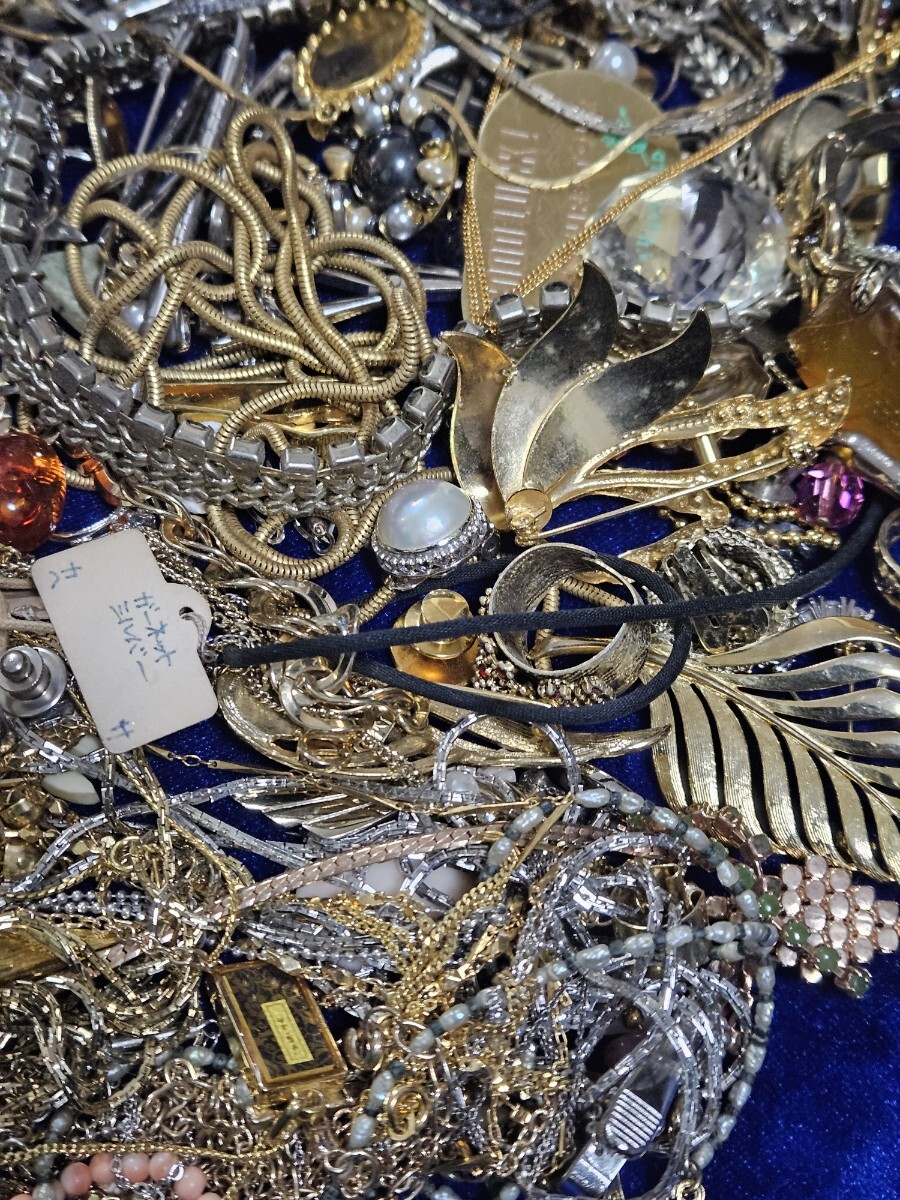 遺品整理 1100g アクセサリーまとめ イミテーション ネックレス 指輪 ブローチ イヤリング メッキ 自宅整理品 大量まとめ売り