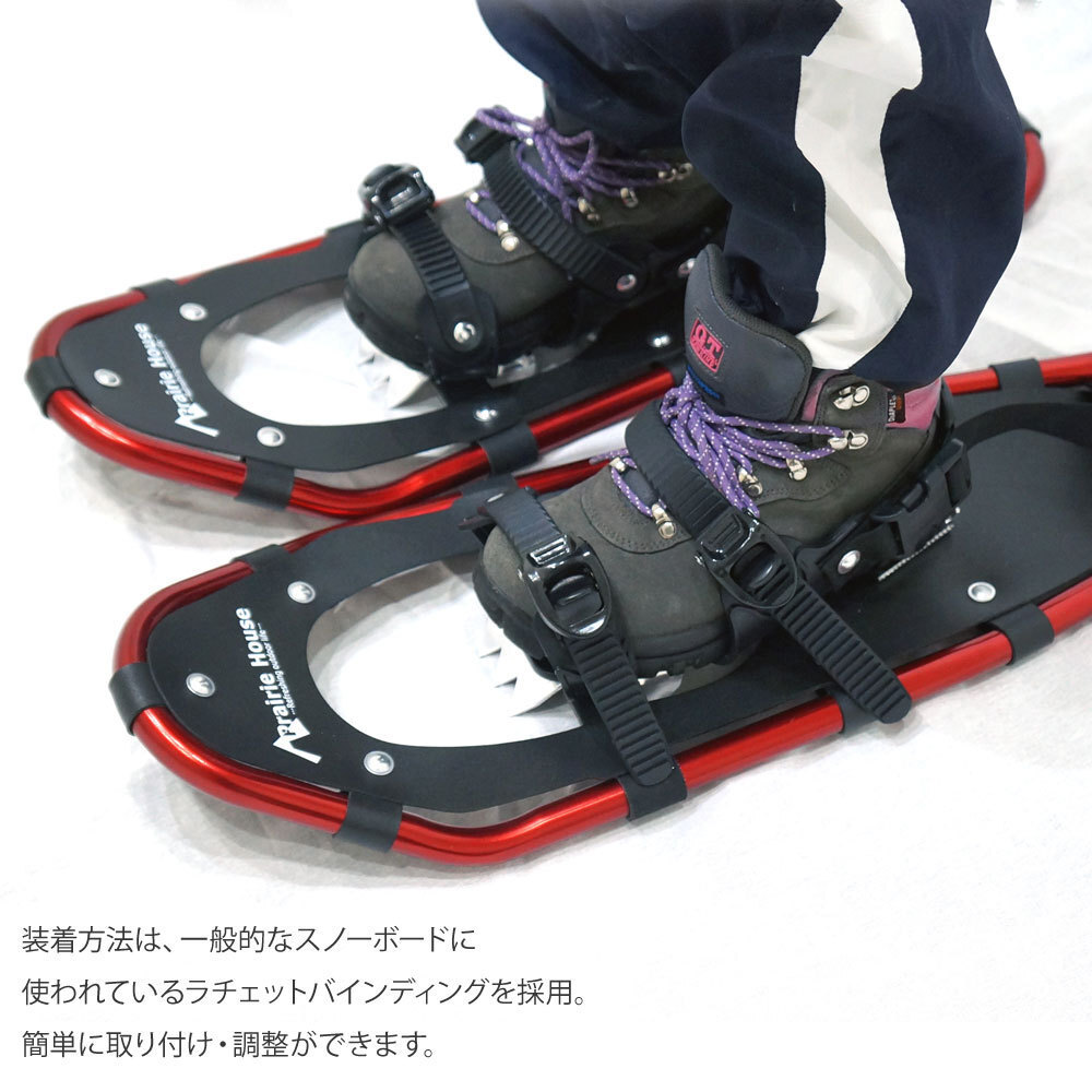 2点セット Prairie House スノーシュー トレッキングポール アンチショック アルミ スノーシュー赤 ポール銀 XO824XO847RS
