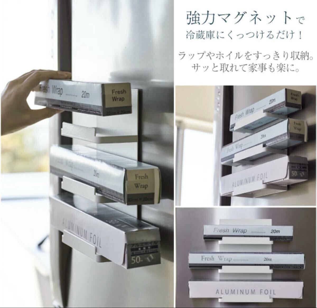 山崎実業 plate マグネット ホワイト ラップ ホイル アルミホイル フリーザーバッグ ジップロック ボックス 収納 整理 ラック ホルダー