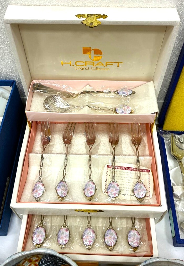 (HE4406他)1円スタート 多様鉢 盛り鉢 小鉢 小皿 江戸切子 桂由美 銀 スプーン フォーク等 食器おまとめ 合計122点 大量 まとめ売り