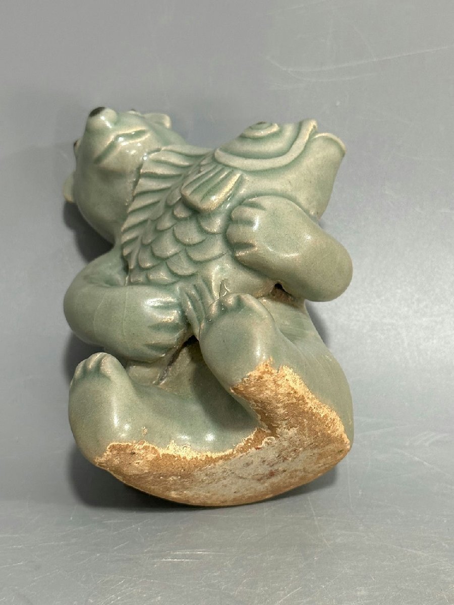 ■観心・時代旧蔵■C7623高麗旧蔵 朝鮮美術 高麗磁 朝鮮古陶磁器 古高麗 李朝 高麗青磁熊魚水滴