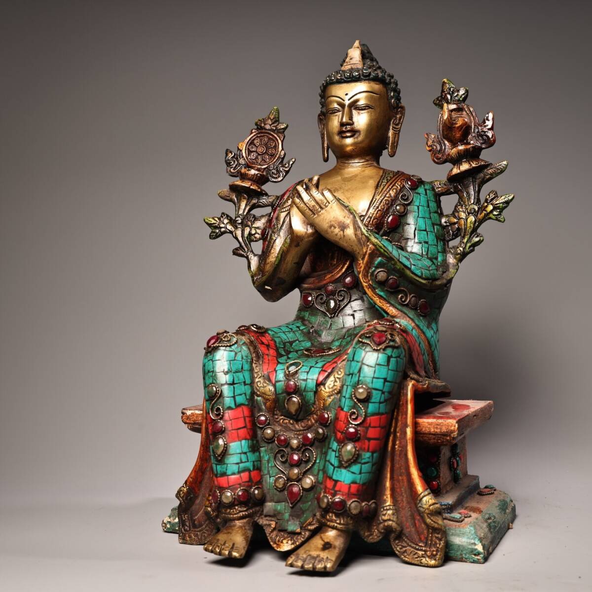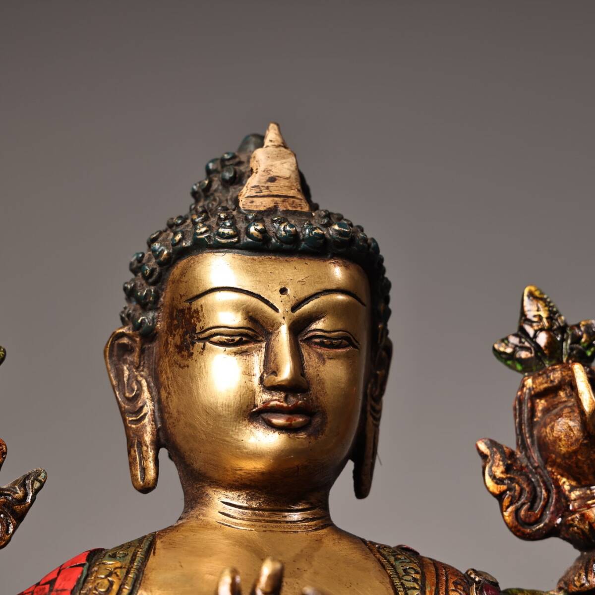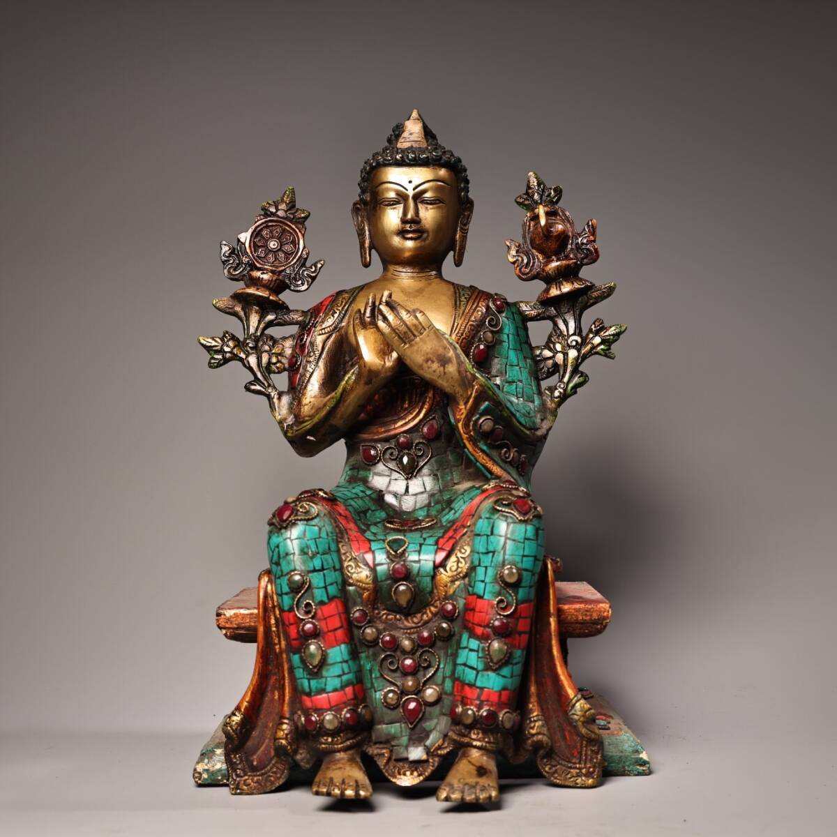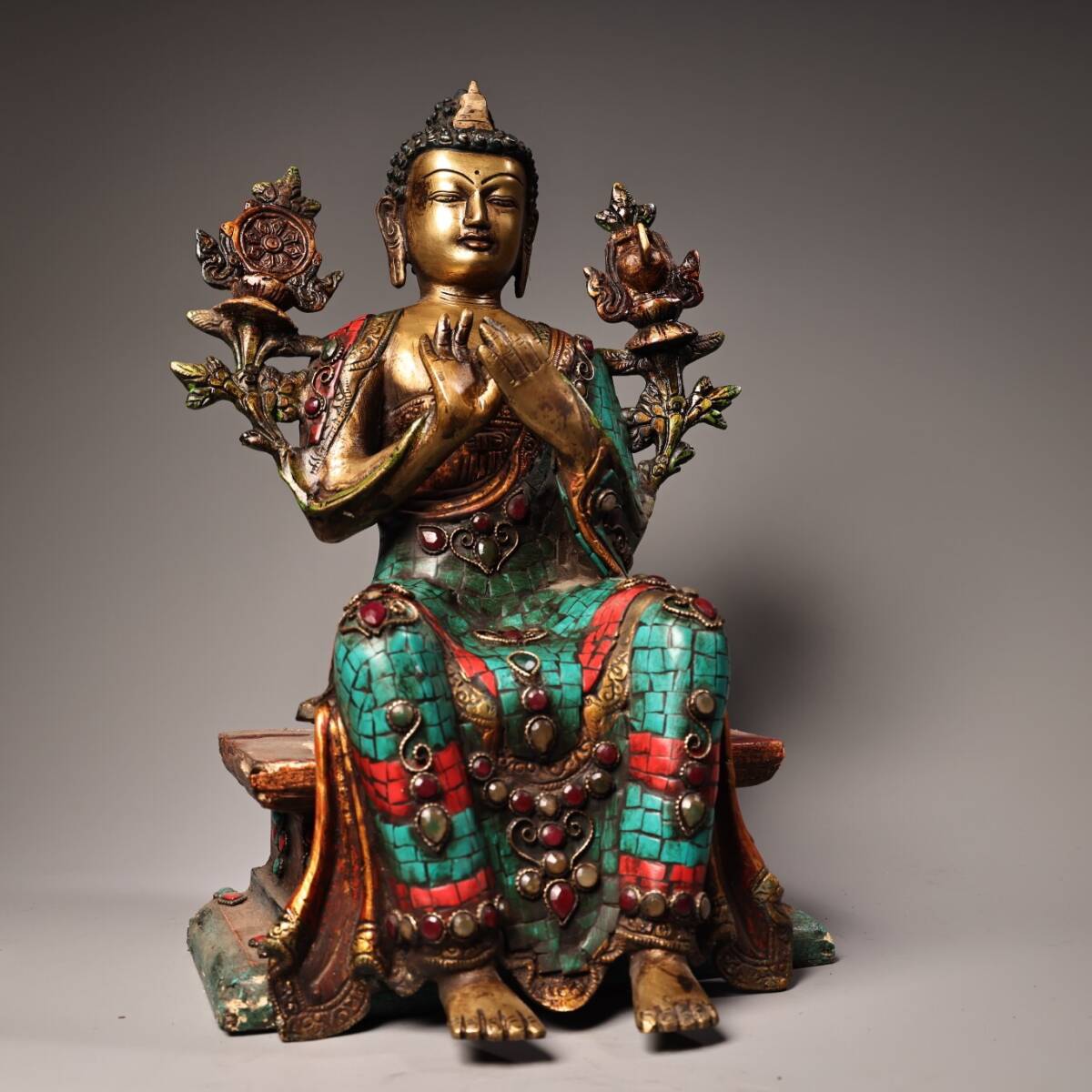 【仁】『銅製・寶石嵌・描金・彩繪・大日如來像・仏教古美術・供養品』極細工 古賞物 中国古玩 古美術 古美味