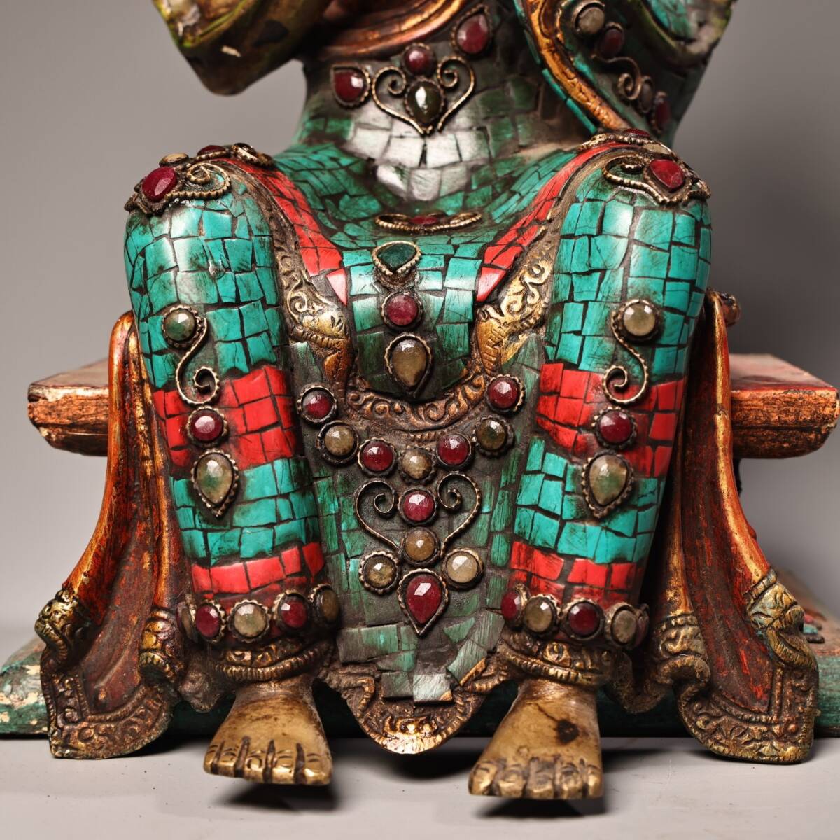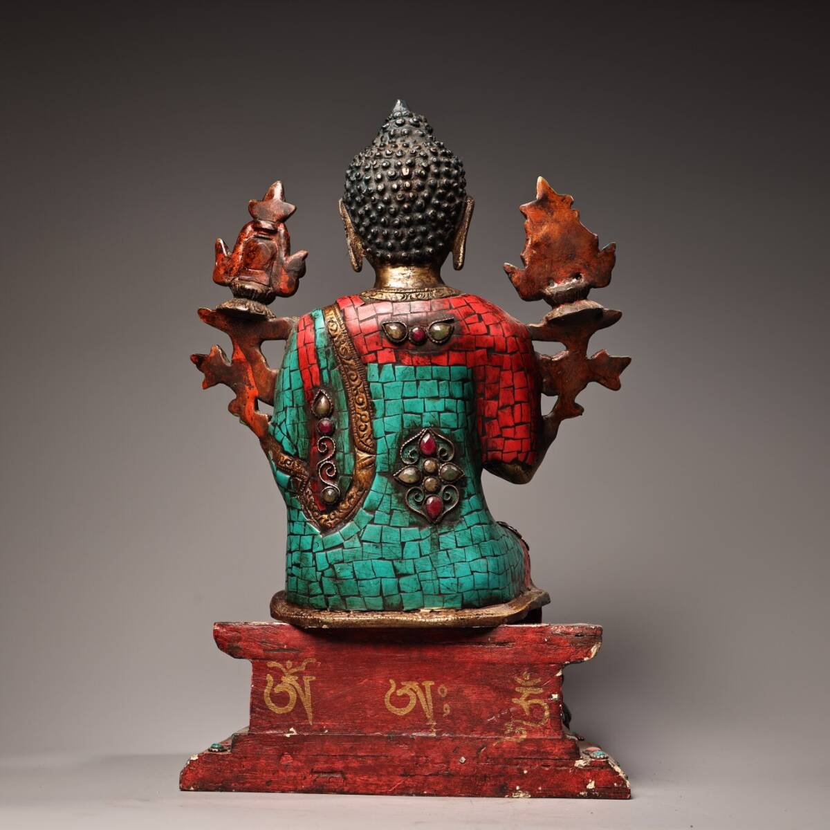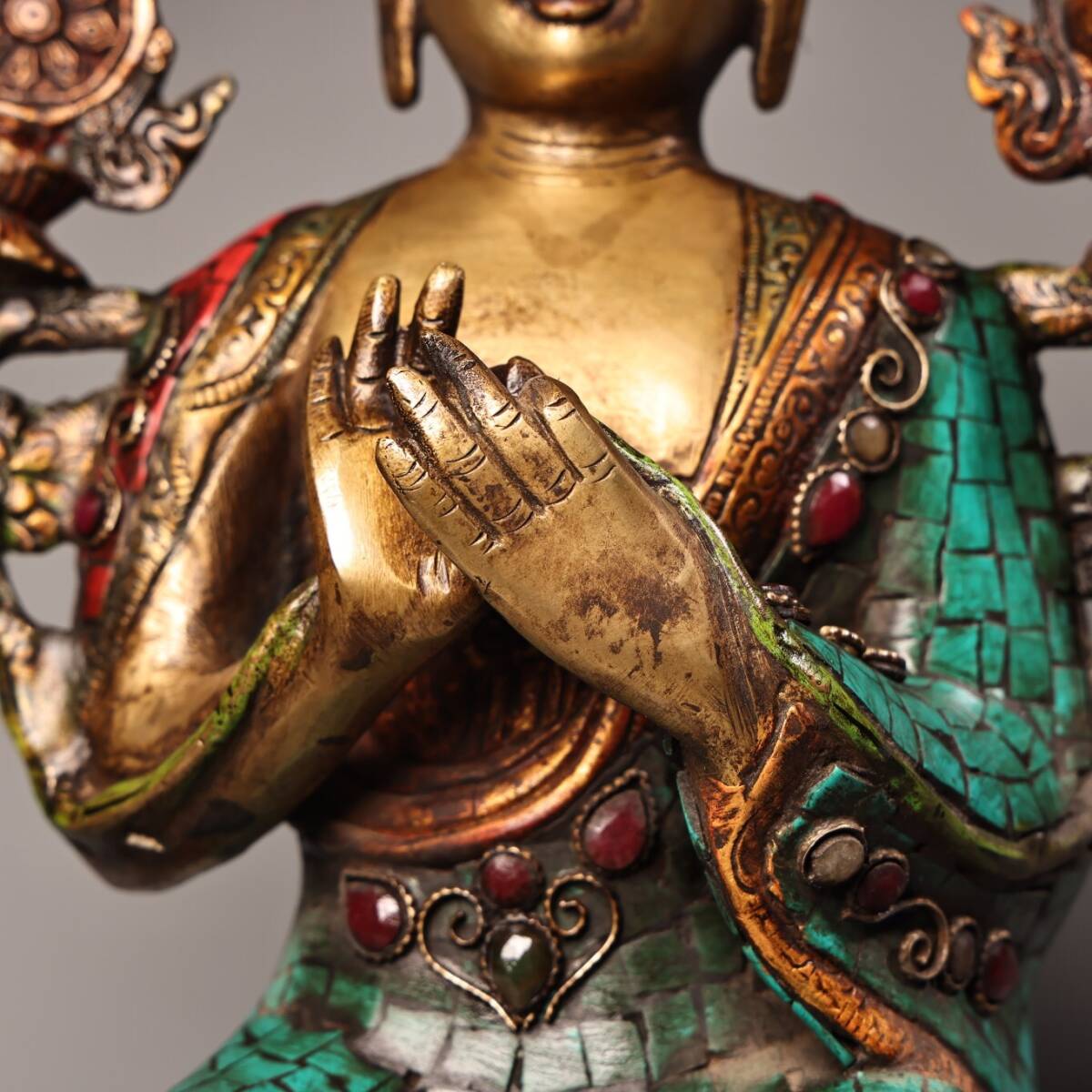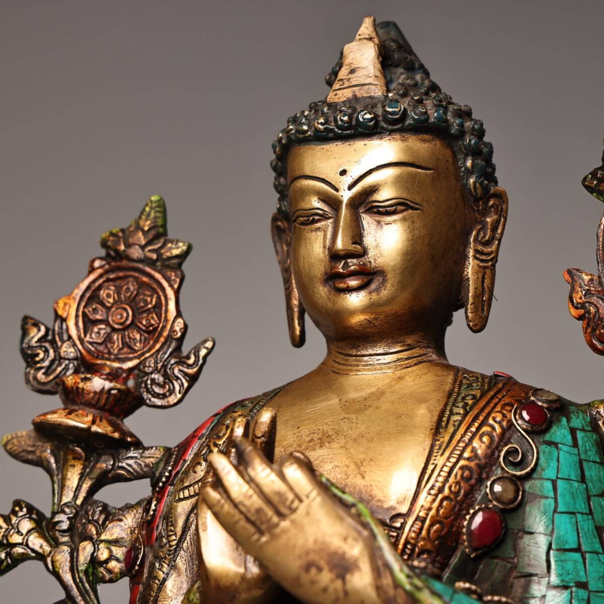 【仁】『銅製・寶石嵌・描金・彩繪・大日如來像・仏教古美術・供養品』極細工 古賞物 中国古玩 古美術 古美味