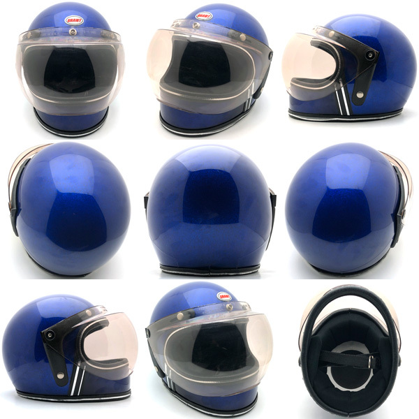 送料無料 Dead Stock 新品 可変式純正シールド付 GRANT ULTRAMARINE METALFLAKE 55cm/グラント青ブルービンテージヘルメットbsa70sシェル