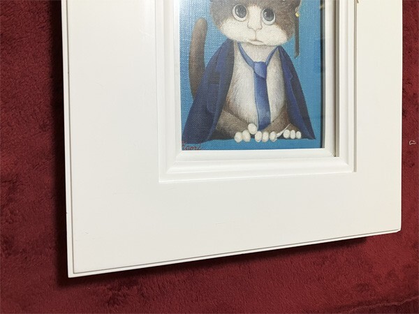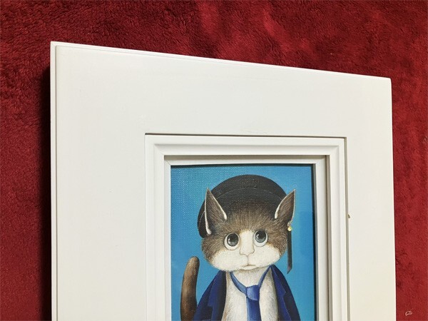 渡部香●真作●わたべ かおり●キャンバスに油彩 肉筆原画 直筆サインあり■可愛いイラスト 猫 ねこ 仔猫■おしゃれ 正装