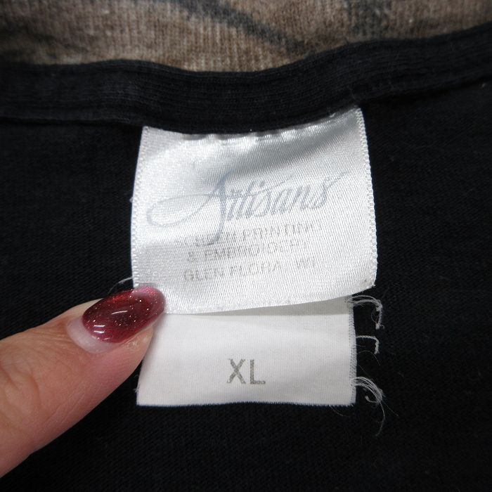 XL/古着 長袖 ビンテージ Tシャツ メンズ 00s 鳥 Turkey Tap ツートンカラー ロング丈 コットン クルーネック 黒他 ブラック 25sep03 中古