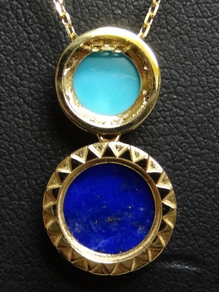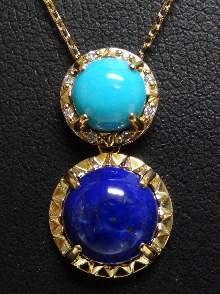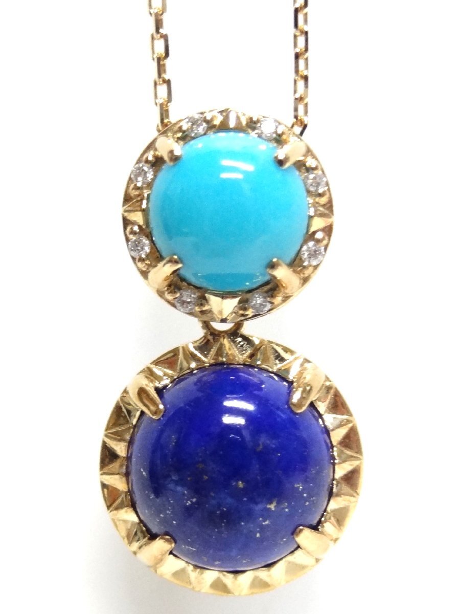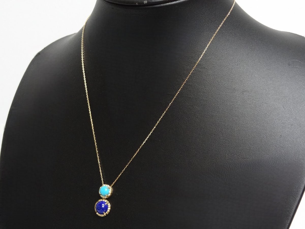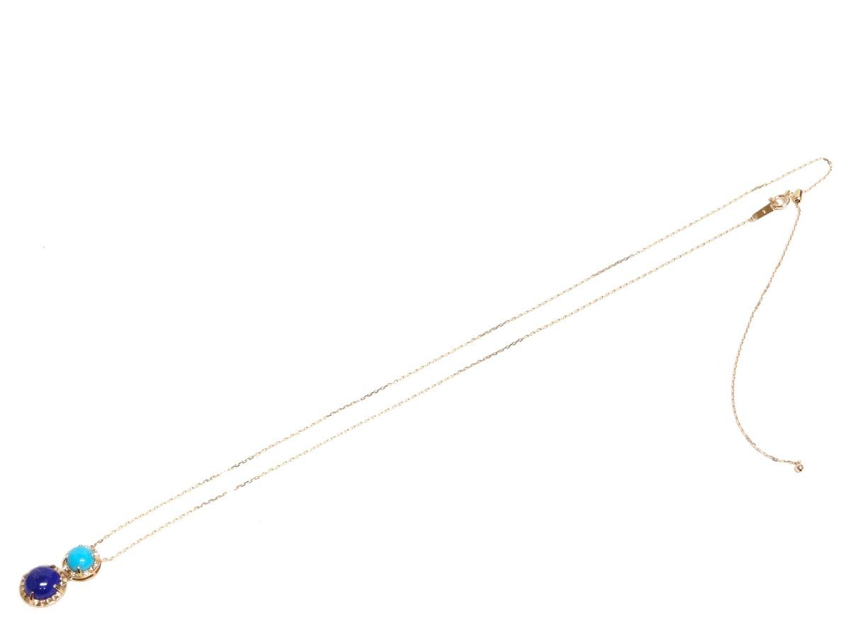 新品同様 Vendome AOYAMA ヴァンドーム青山 ラピスラズリ ターコイズ ネックレス K18 4.02g 55cm アジャスター付 ☆