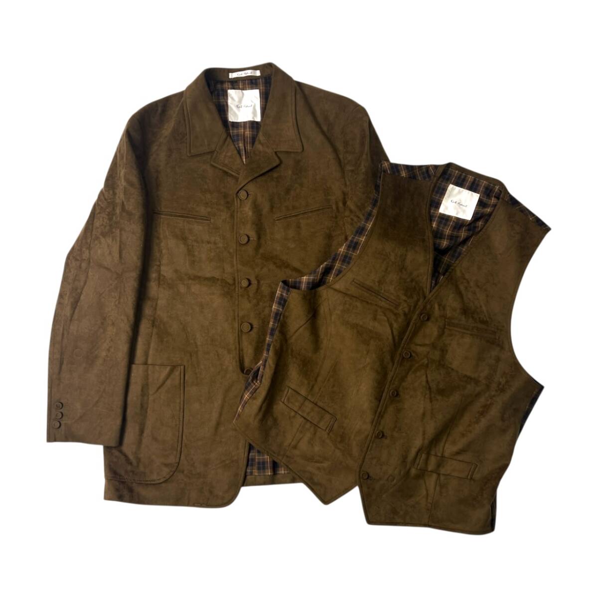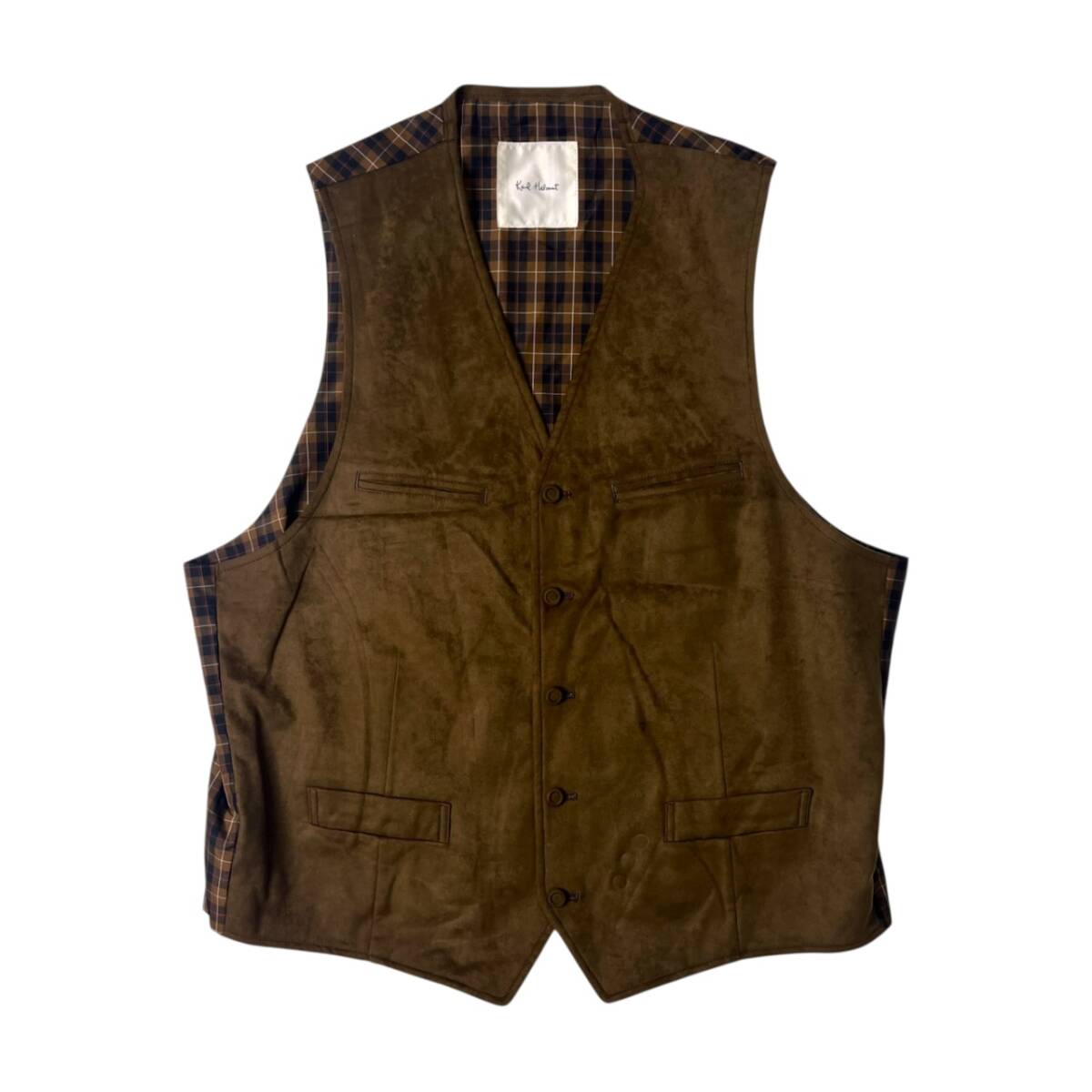 Karl Helmut カールヘルム 裏チェック スエード カバーオール ジャケット&ベスト L/ブラウン/フェイクレザー