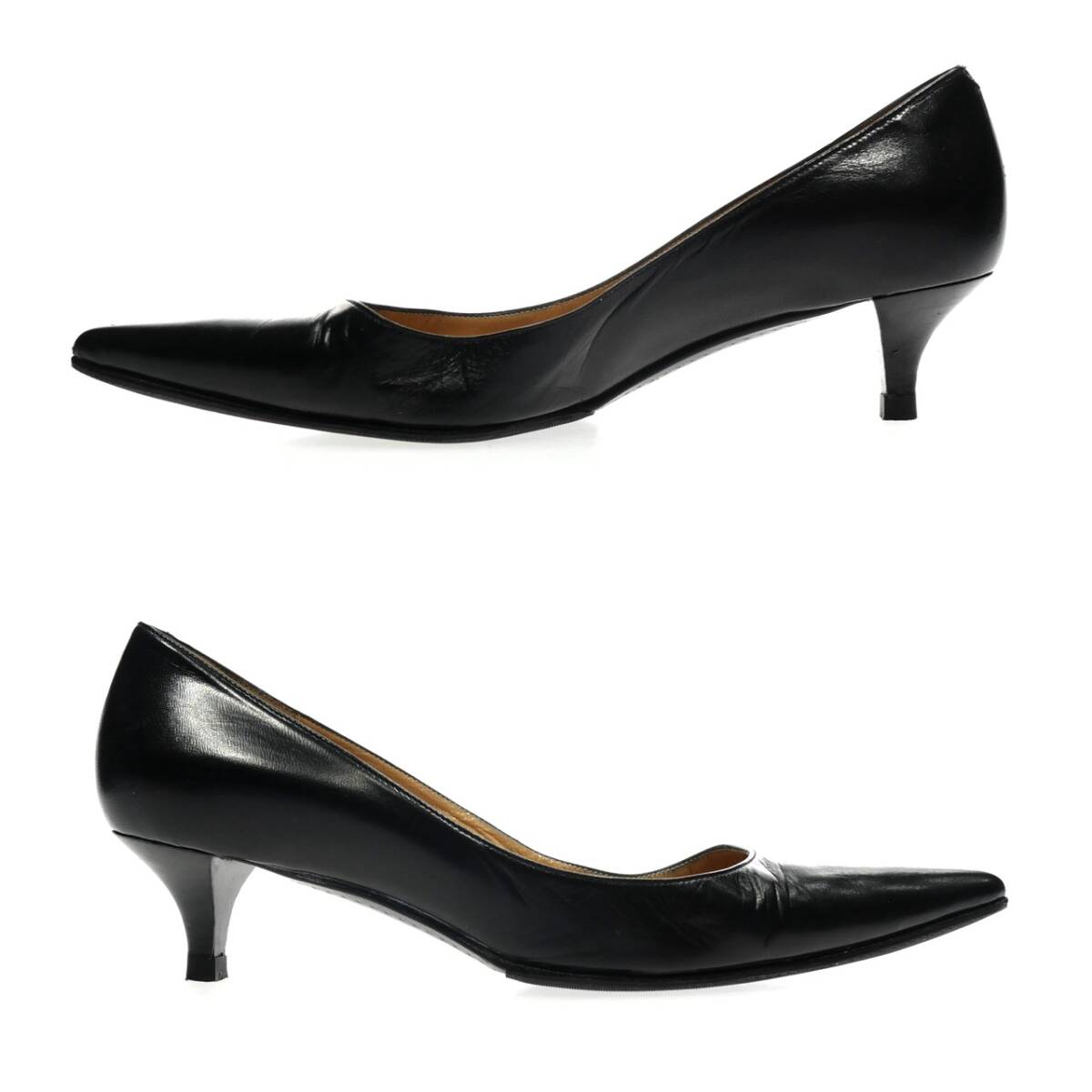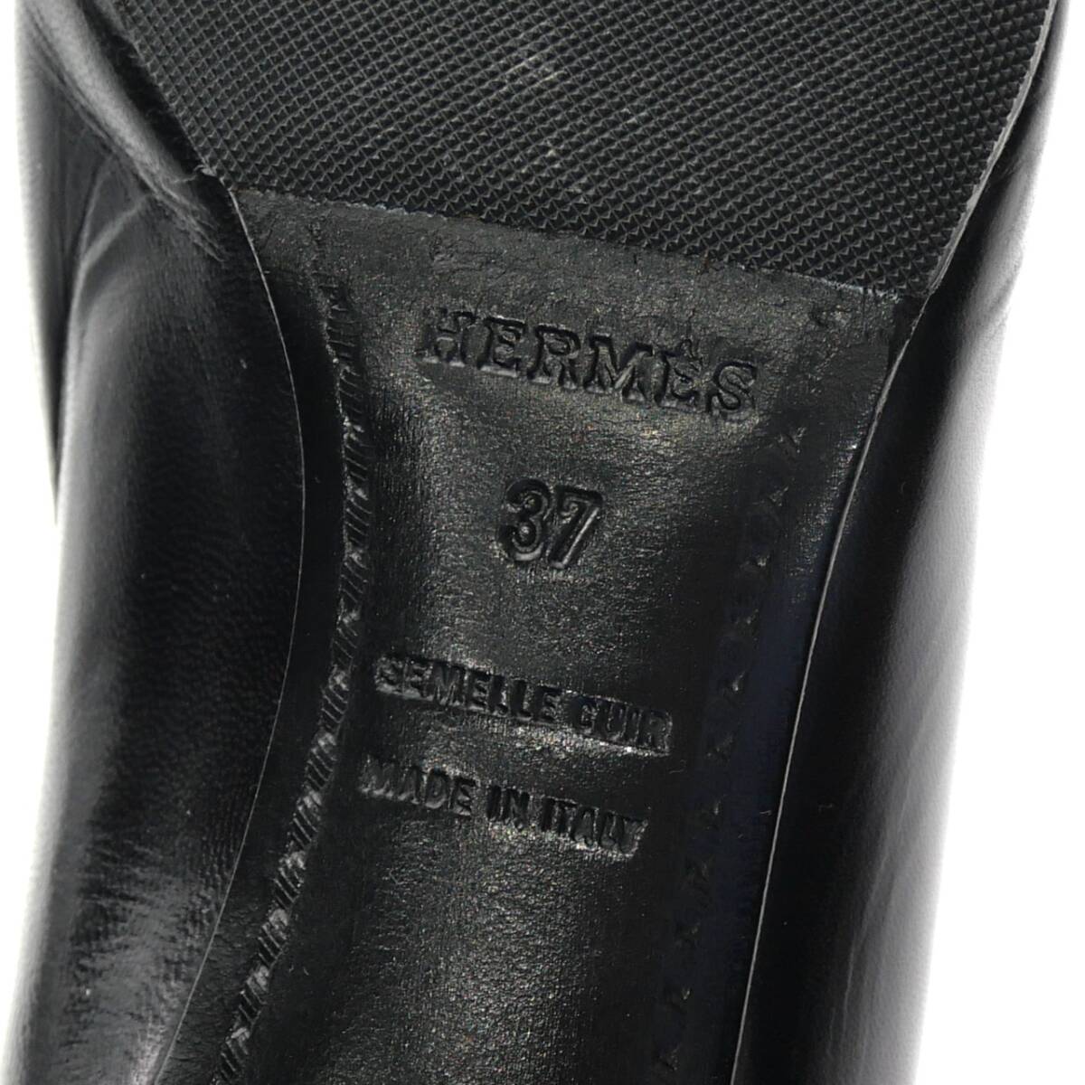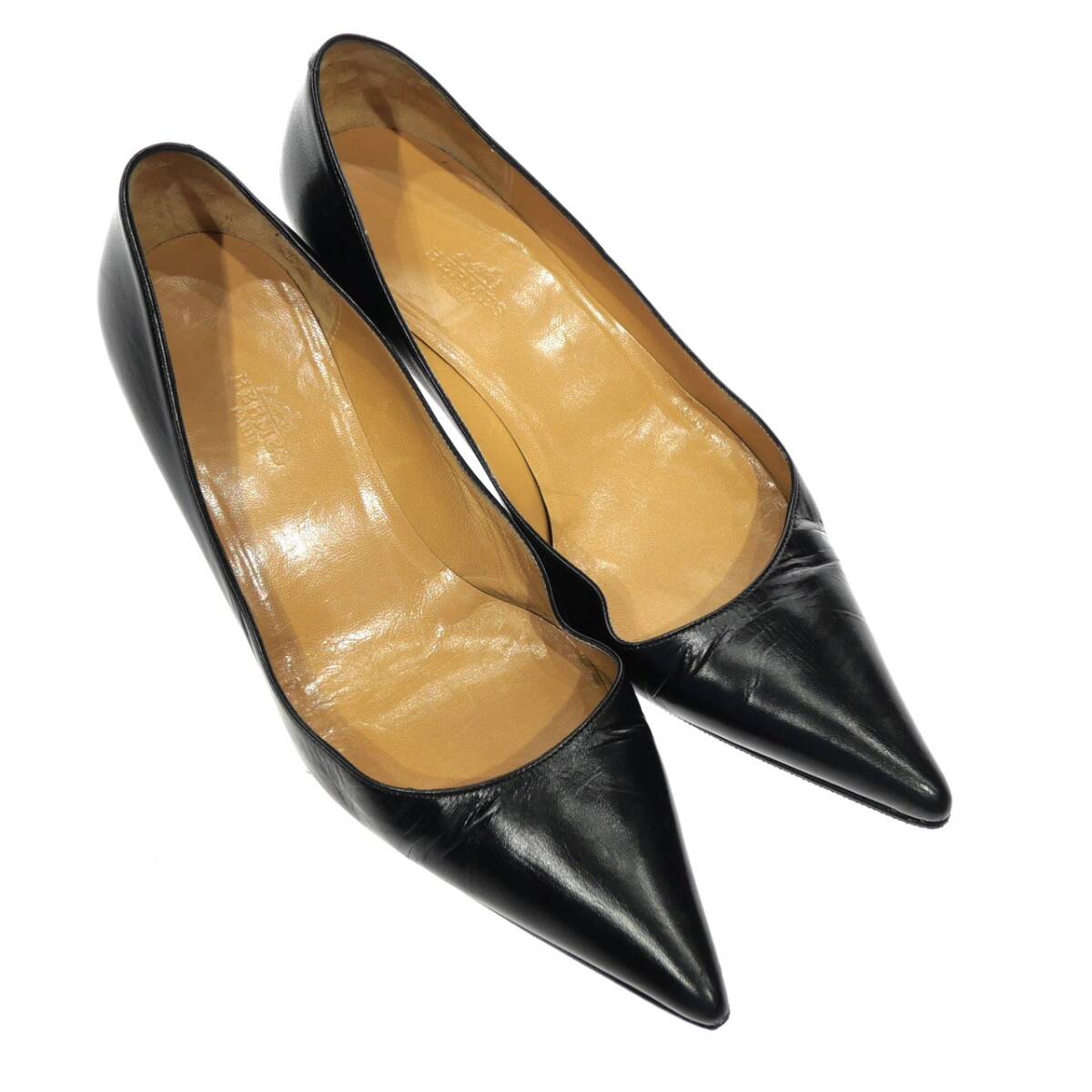 1円スタート HERMES エルメス レザー パンプス ヒール ポインテッドトゥ 靴 シューズ イタリア製 ブラック 黒 レディース サイズ 37 24.0cm