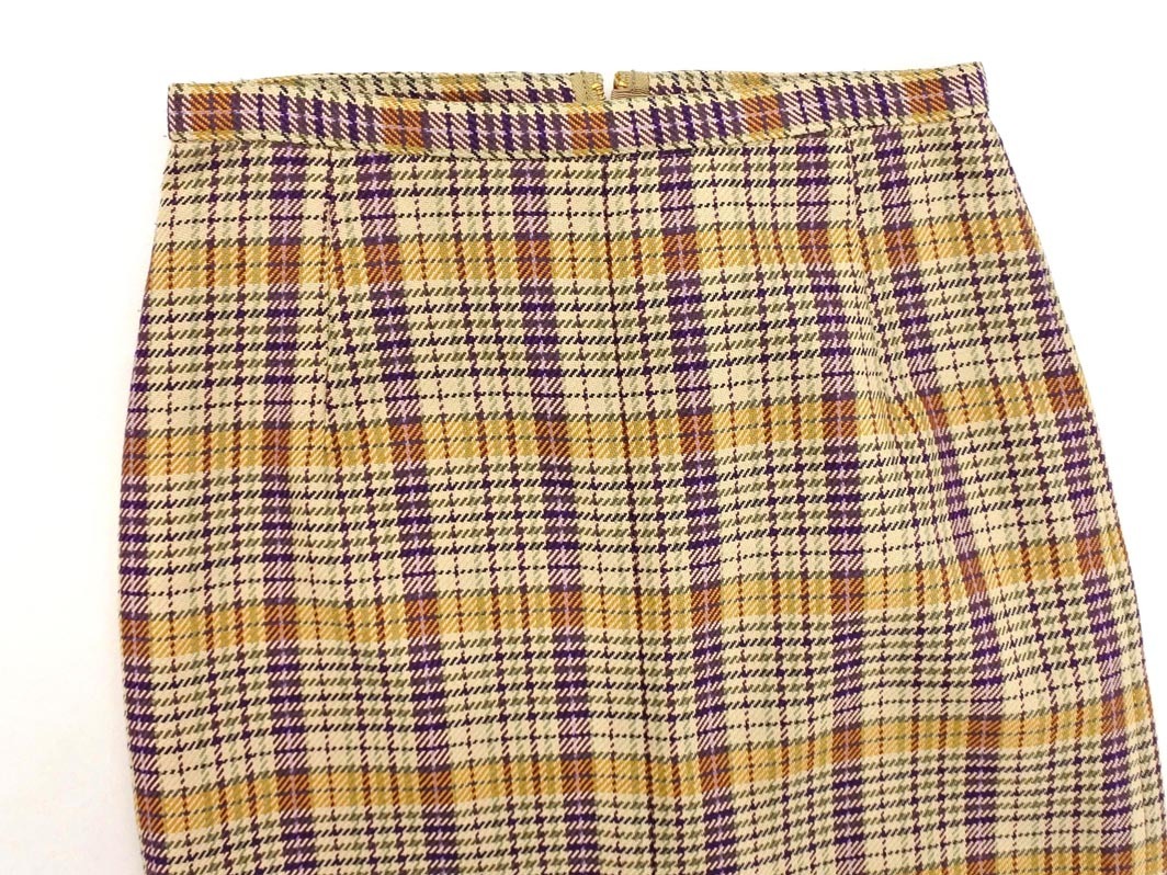 DRESSTERIOR ドレステリア チェック スリット ロング スカート size3/ベージュx紫 ◇■ ☆ fjb7 レディース