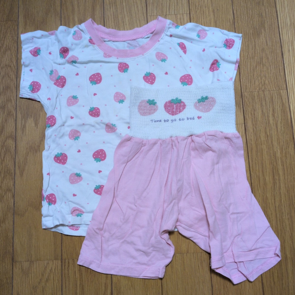 即決!いちご柄半袖パジャマ上下セット90cm白ホワイトピンク
