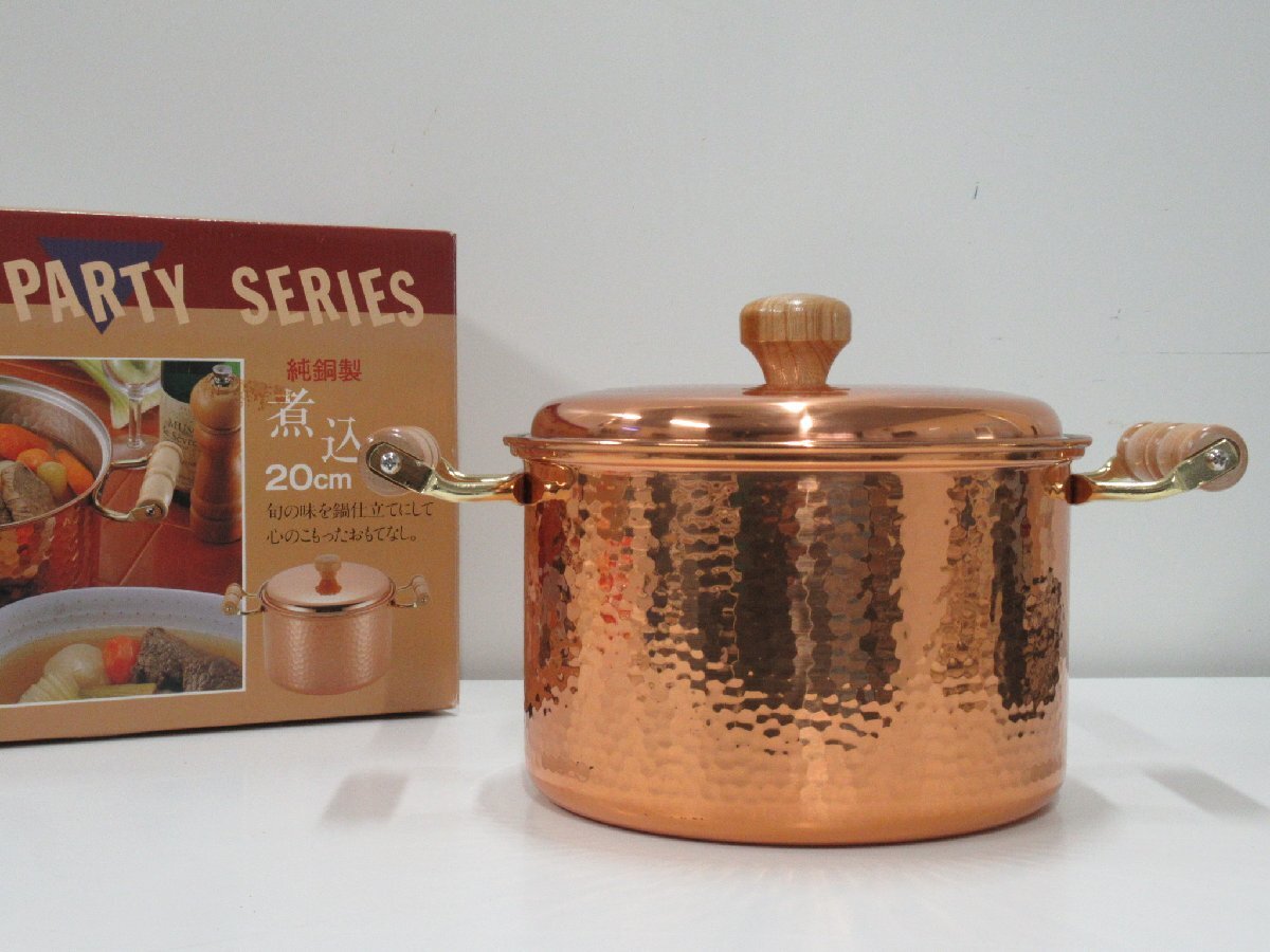 J359◆純銅 蓋付煮込み鍋 20cm 両手鍋 Perdipine LA 昭和レトロ 調理器具 共箱 キャンプ アウトドアに
