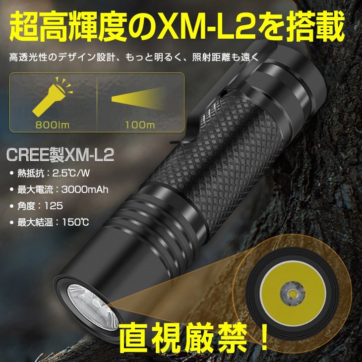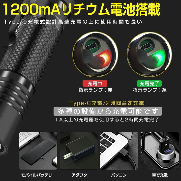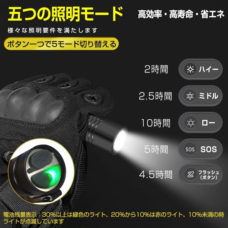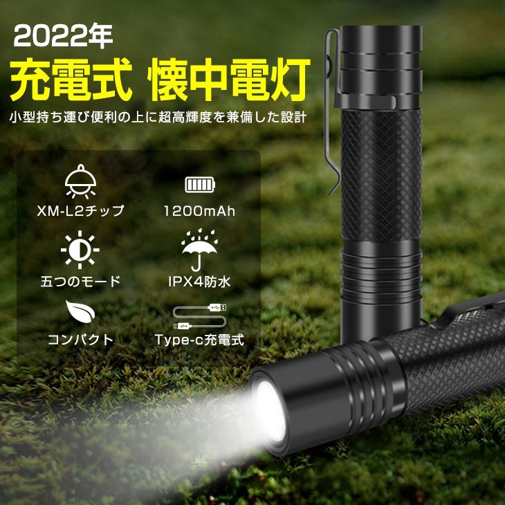 即納!懐中電灯 1台 充電式 超高輝度 800ルーメン 1200mAh 5モード調光 ledライト 小型 送料無料 コンパクト 防災 野外