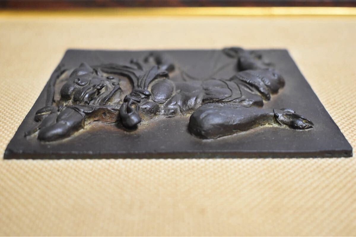 【英】A1202 須賀松園 風神レリーフ H37㎝ 日本美術 仏教美術 銅製 銅板 彫刻 置物 骨董品 美術品 古美術 ba