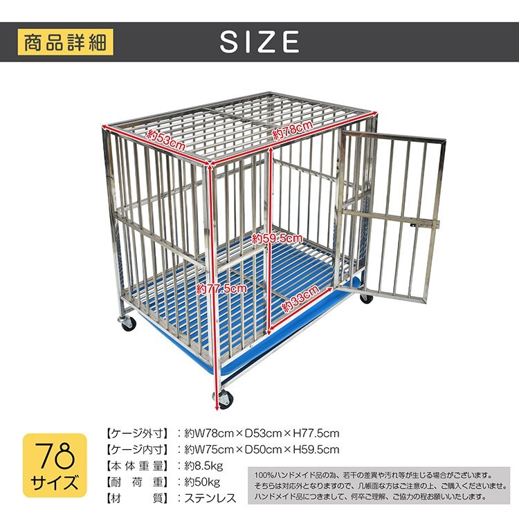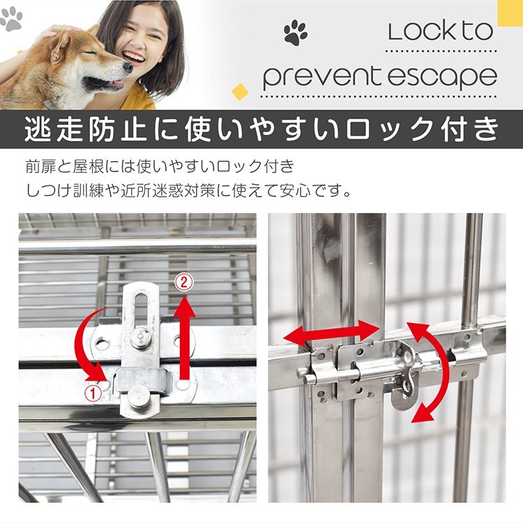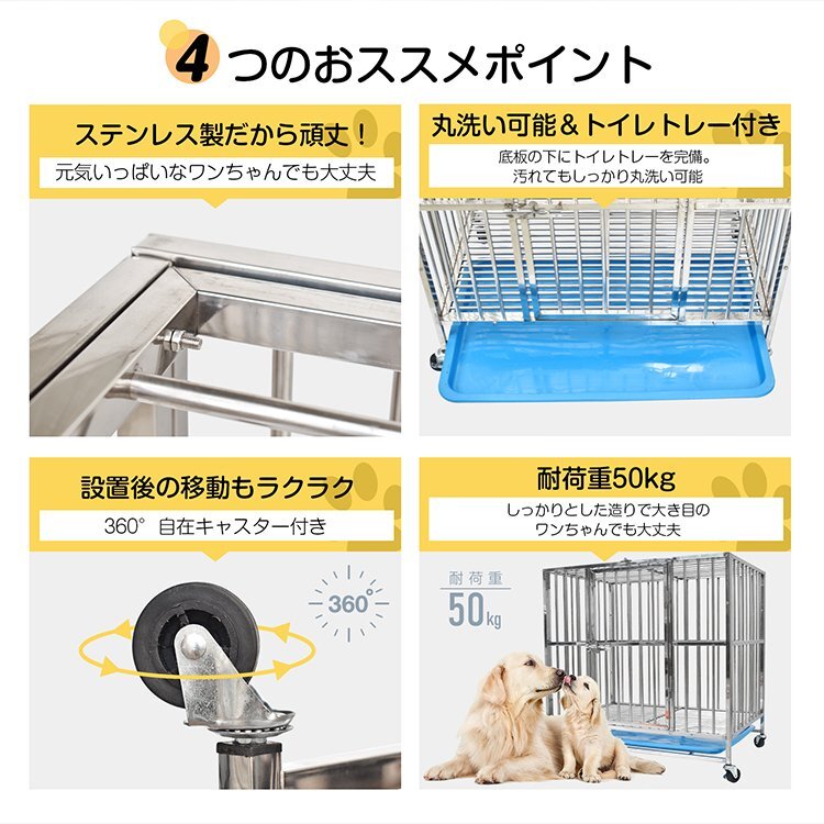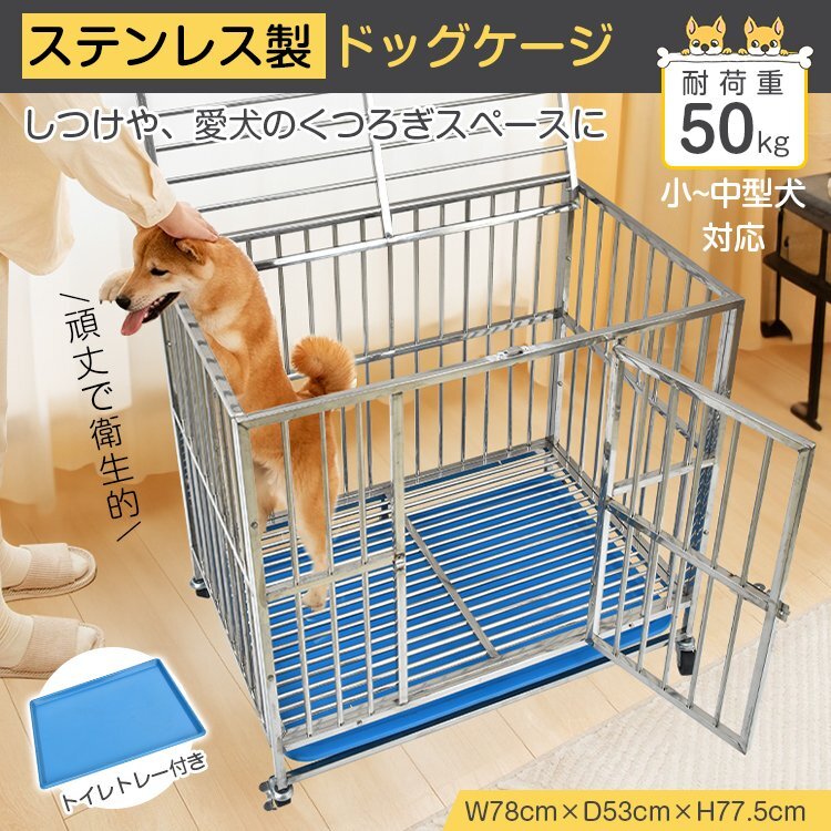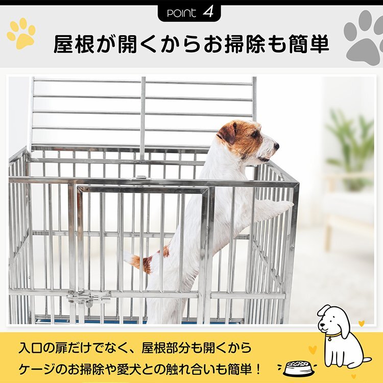 【在庫売り尽くしセール】送料無料 犬用ケージ 小型犬 中型犬 ケージ 犬小屋 犬用ケージ 屋根付き キャスター付き ステンレス pt088-78