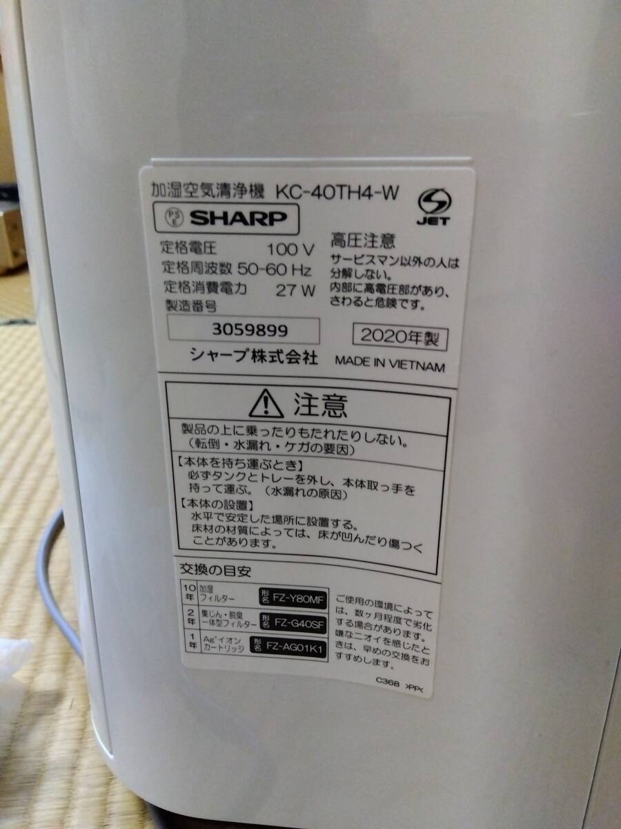 シャープ KC-40TH4-W 加湿空気清浄機 SHARP 加湿器 空気清浄機 プラズマクラスター